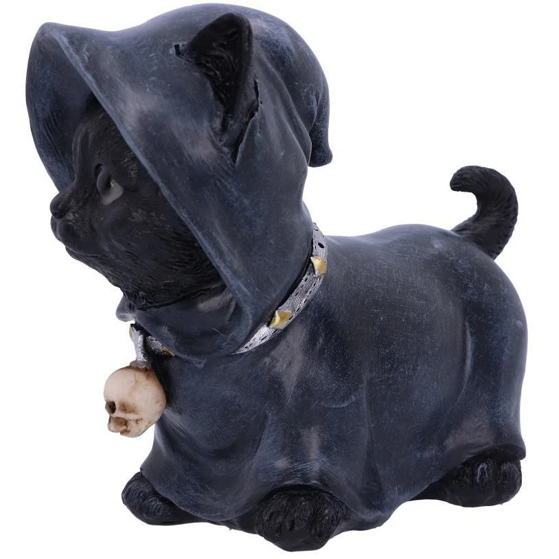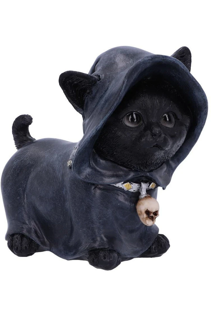 The feline companion of the Grim Reaper. This little black kitten has shining black eyes wearing a silver collar with a small skull charm attached. The kitten wears a shroud to match that of her master and truly is Death’s best friend. Cast in the finest resin before being expertly hand-painted, this reapers kitty would make the perfect addition to any gothic collection.