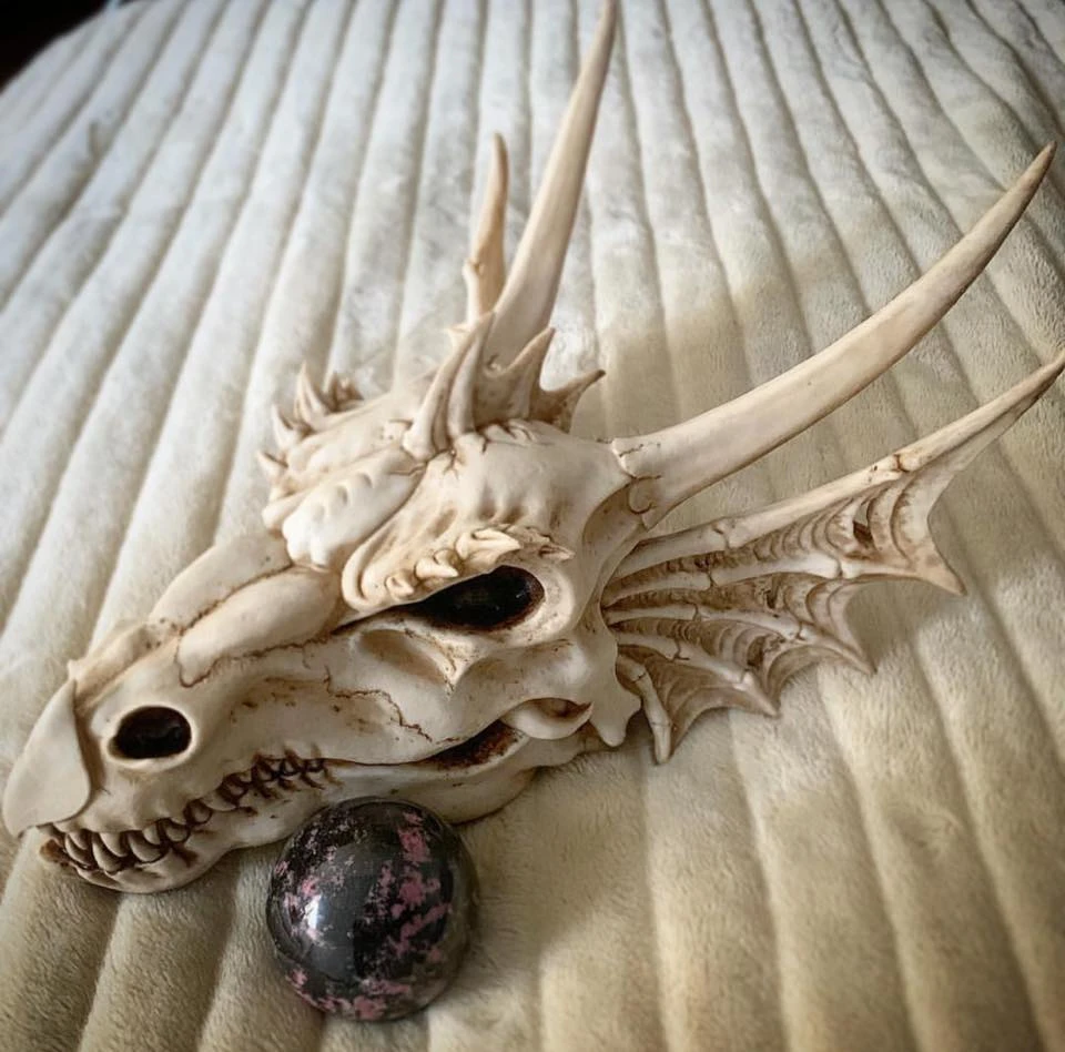 This realistic Dragon Skull would be a welcome addition to any alternative home. Featuring different textures and even slight cracks in the bone, this skull looks completely natural and realistic! Cast in the finest resin before being hand-painted, this piece would be perfect for anyone who loves these mythical beasts.