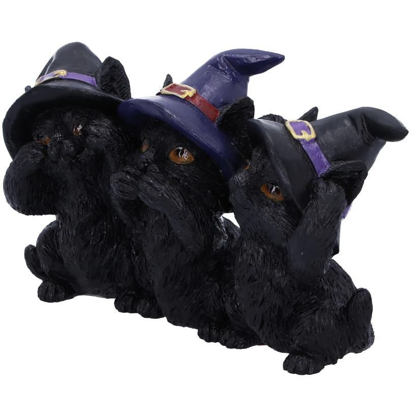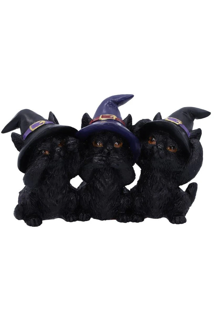 Three Wise Black Cats See No Hear No Speak No Evil Familiar Figurine.