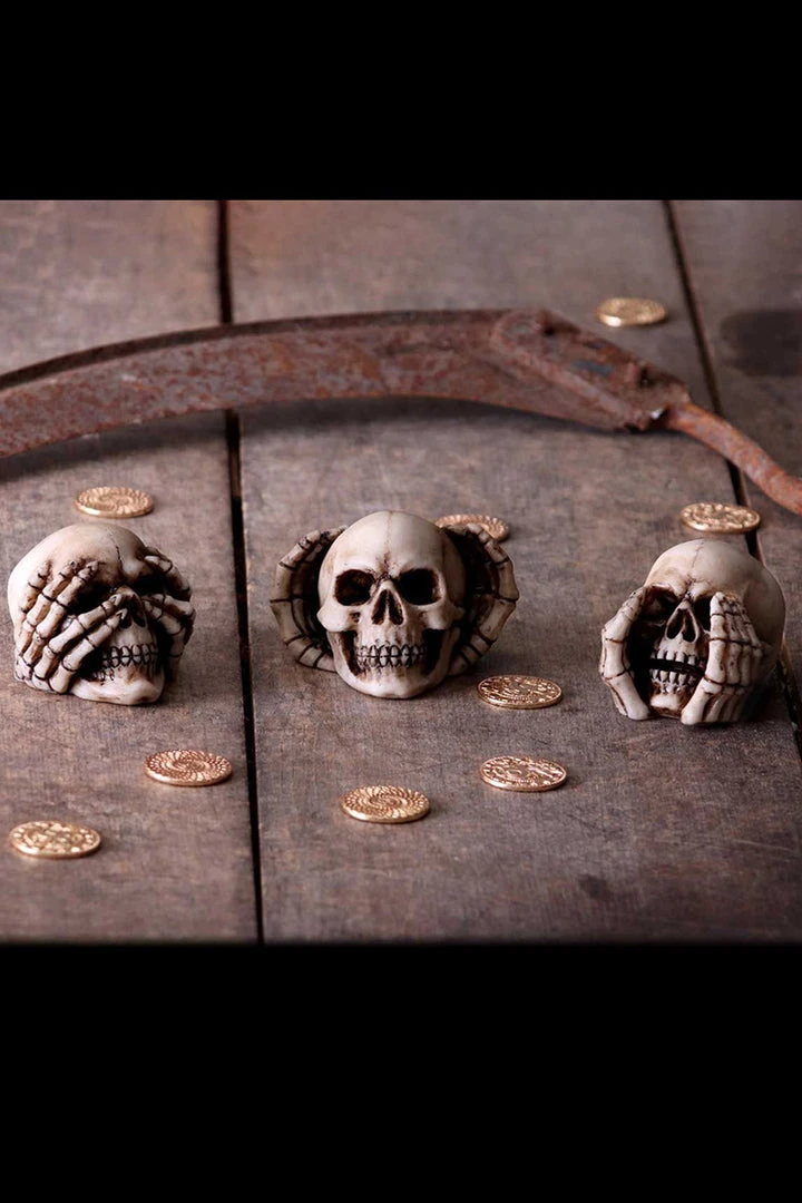 Illustrating Confucius’ famous maxim of “See no evil, speak no evil, hear no evil” is these Three Wise Skulls. Sitting side by side, one covering their eyes, one covering their ears and one in shock, these Three Wise Skulls are cast in the finest resin before being expertly hand-painted.