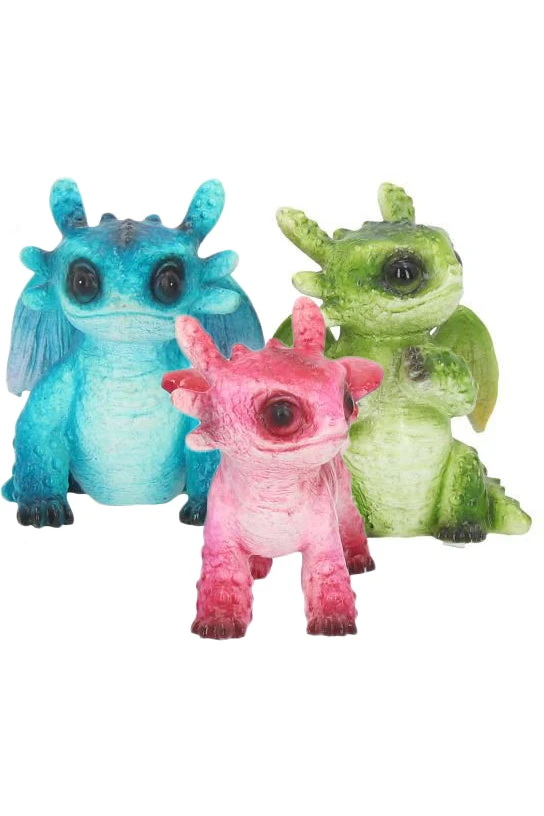 These three tiny Dragons are the perfect fantasy companions. Each cast in the finest resin before being expertly hand-painted, they have large eyes, staring at you inquisitively. The red dragon stands on all fours, the blue sits on his hindquarters and the green rests on his back legs, each making the perfect addition to any fantasy collection.