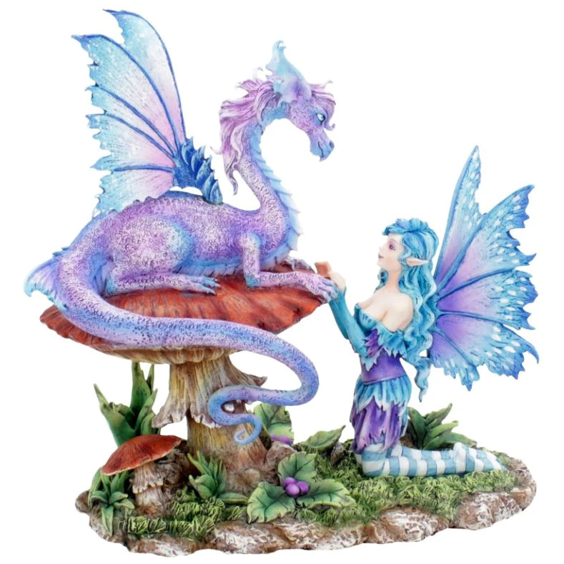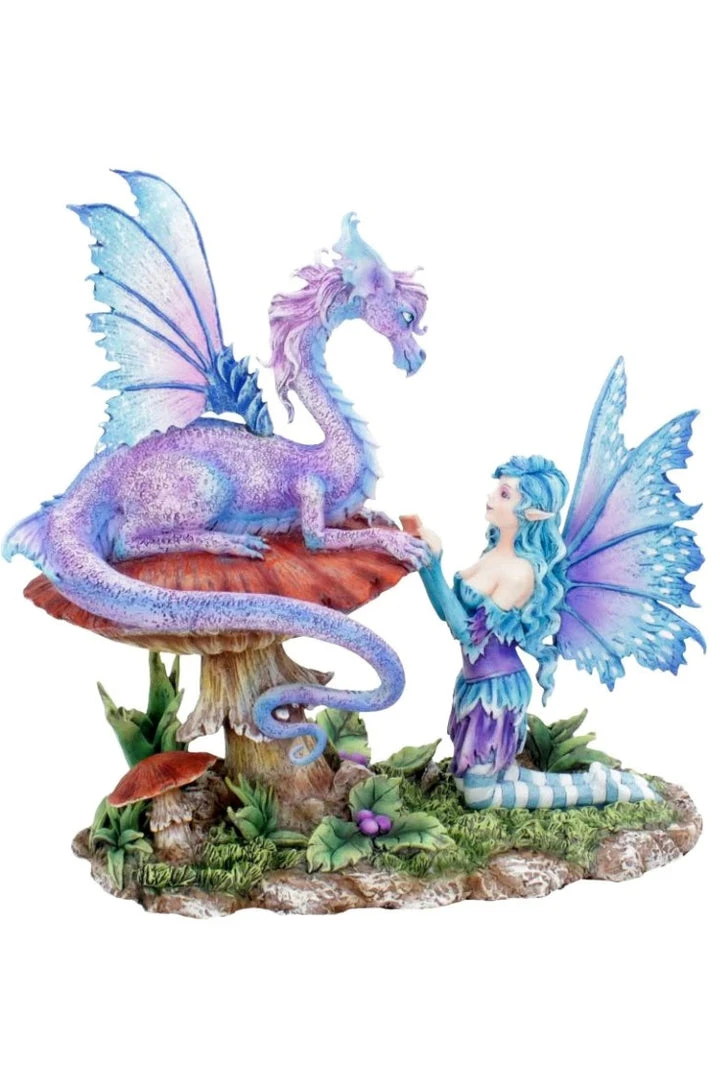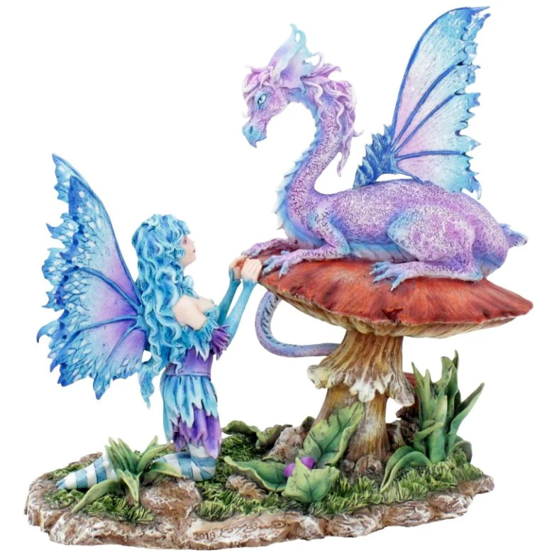 From the beautiful mind of Amy Brown comes this pair of unlikely friends. This Dragon, sat atop a toadstool, and his Fairy friends perfectly complement each other in colour and are appear as if they are meant to be soul-mates. Cast in the finest resin before being hand-painted, this pair make the perfect present for your favourite companion!