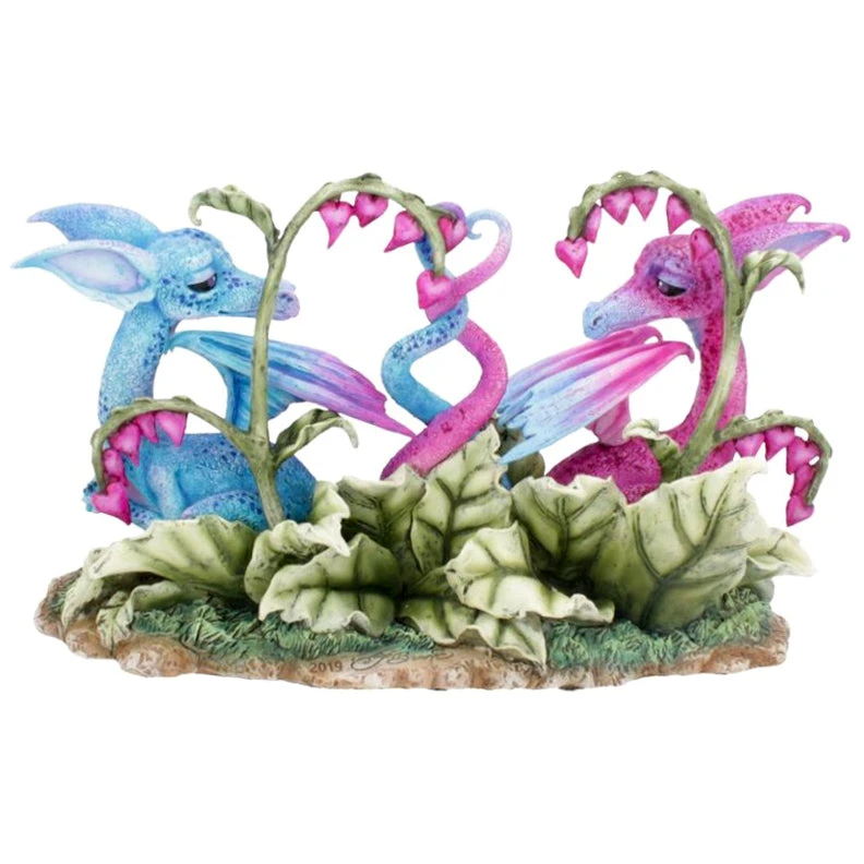From the beautiful mind of Amy Brown comes this pair of love-drunk Dragons. They perfectly complement each other in colour and are surrounded by heart-shaped, floral arrangements. Their tails entwine to form a small love heart. Cast in the finest resin before being hand-painted, these adorable Dragons would make the perfect present for your Valentine!