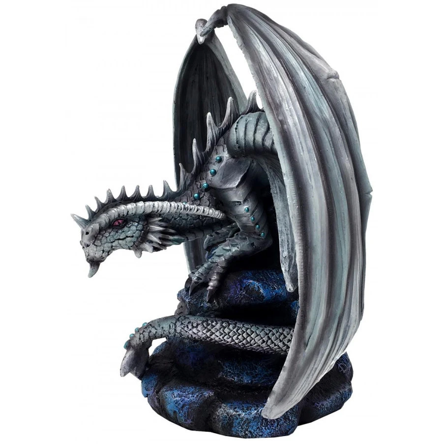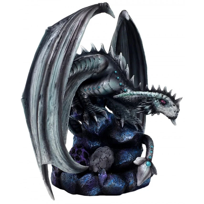 From Gothic and fantasy artist Anne Stokes comes the Age of Dragons range. The figurine depicts the adult Rock Dragon as she perches on a mass of cobblestone protecting her eggs. She is hunched over as she perches in the subterranean cavern, making it easier to see the blue minerals studded along her body, from neck to tail. Cast in the finest resin before being hand-painted, this product is perfect for any Dragon enthusiast.
