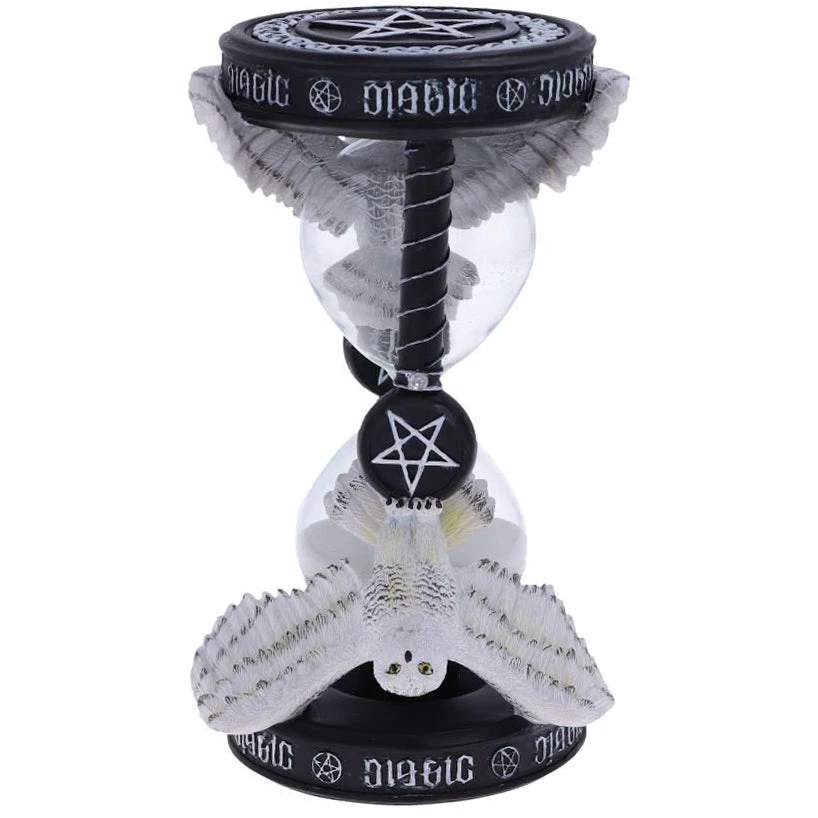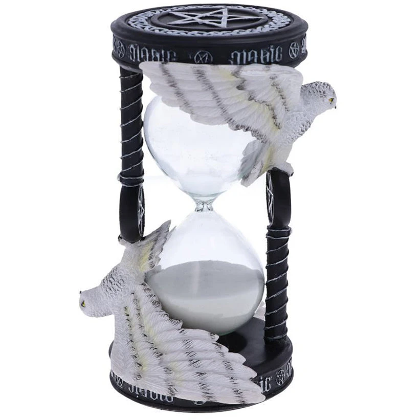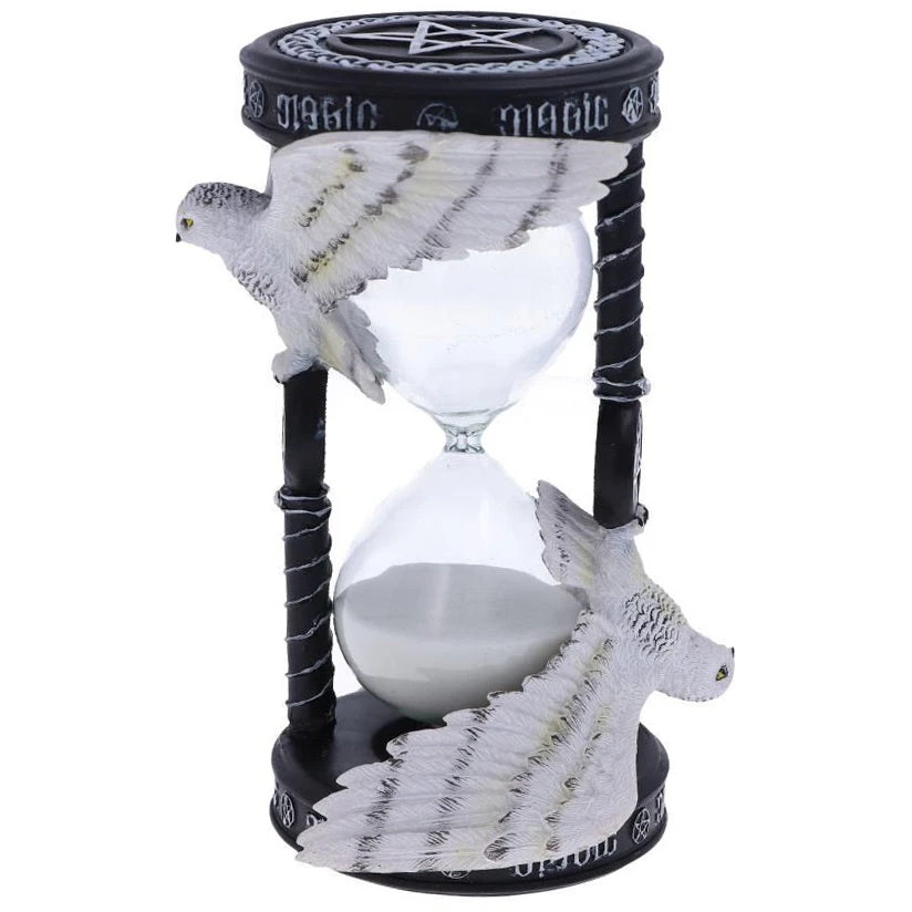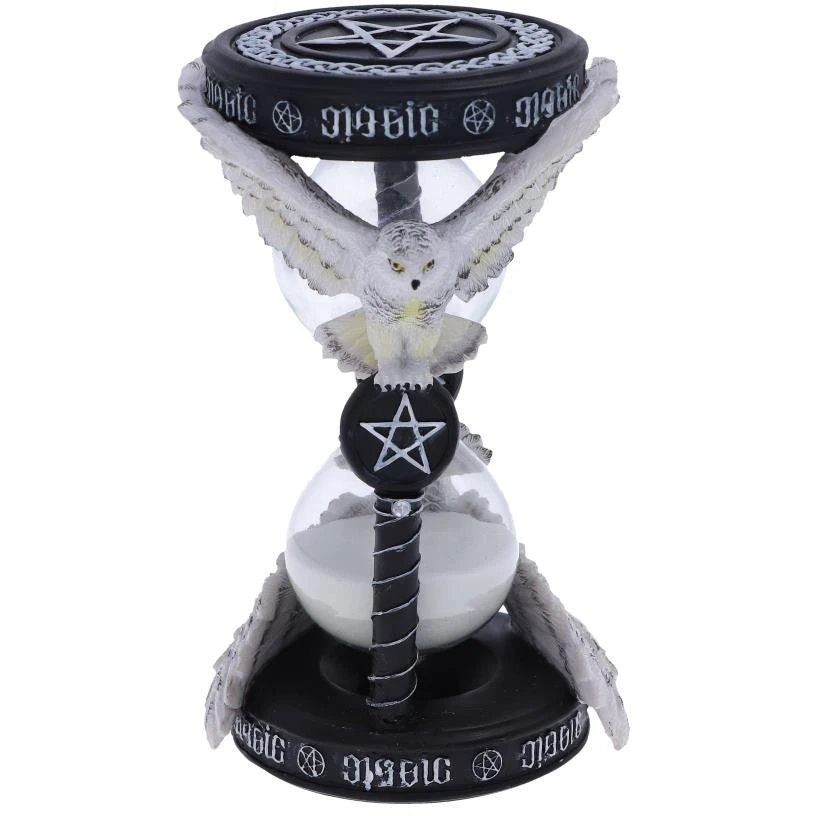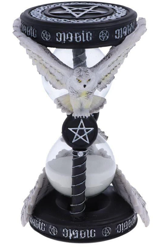 From Gothic and fantasy artist Anne Stokes. Inspired by her Awake Your Magic art which features a Snowy owl gliding through the sky grasping a pentagram pendant between its talons. The sand timer features two owls, above them is ambrigram of MAGIC which can be viewed from any direction or perspective.