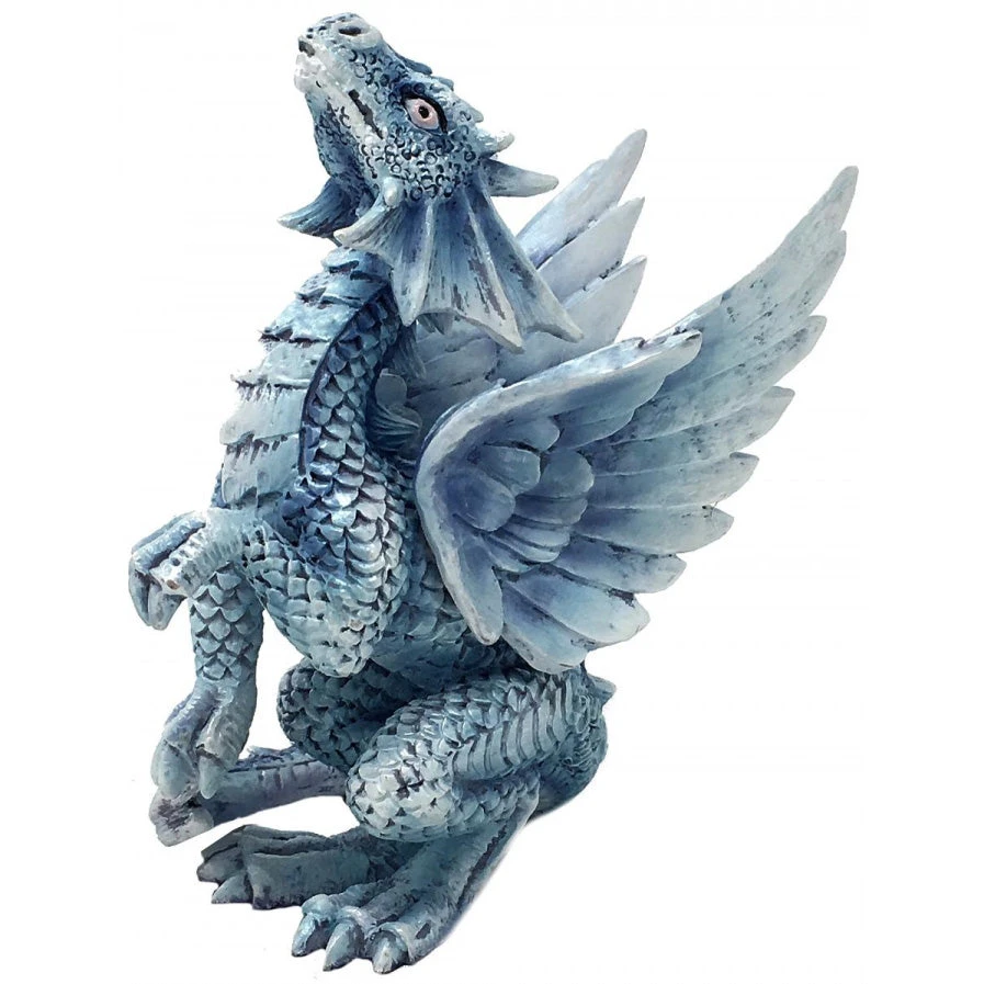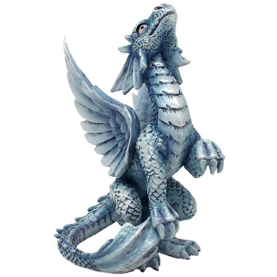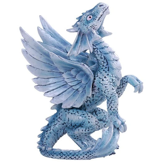 From the imagination of internationally renowned fantasy artist Anne Stokes comes the Age of Dragons range. This bright blue cave dwelling wrynling stands upright gazing admiringly upwards towards its mother. The young creature is perched atop a rock crag in its underwater nest. Cast in the finest resin before being hand-painted, this product is perfect for any Dragon enthusiast.