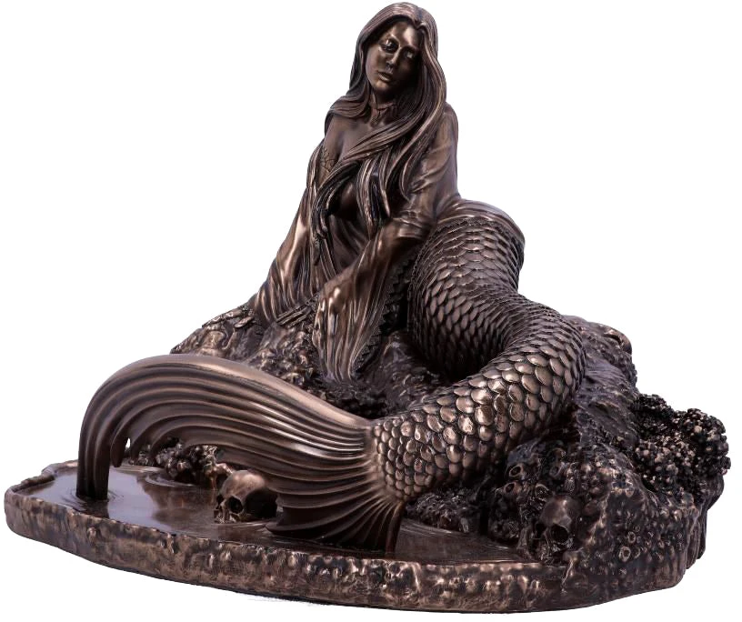 From the incredible imagination of Anne Stokes. Throughout history, sirens have been known for their ability to lead sailors to an untimely demise using only their captivating looks and enchanting call. Sitting upon a rock, this lamenting siren washes her tail through the skulls of her victims as they float helplessly on the water’s surface. As the mist rolls in, an unsuspecting ship is lured into her grasps as she beckons in another eternal companion. Cast in the finest bronze resin, this beauty would make the perfect addition to any mythological fantasy collection.