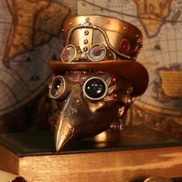 Steampunk Beaky Automaton Apothecary Plague Doctor Bust Figurine.