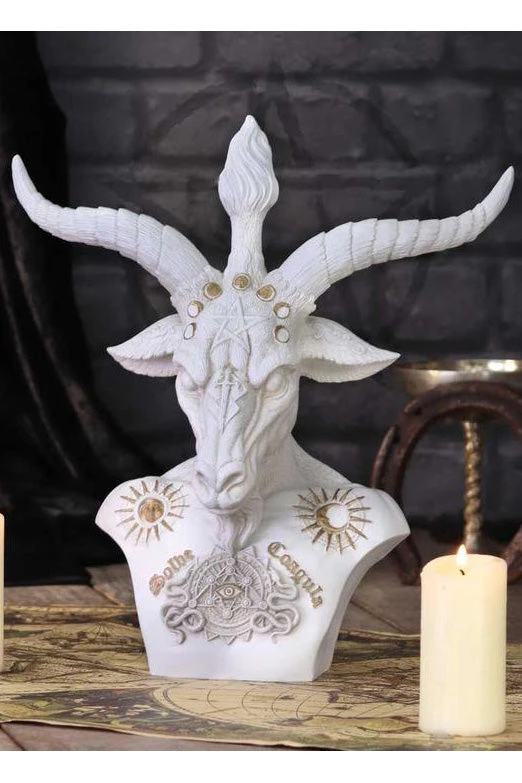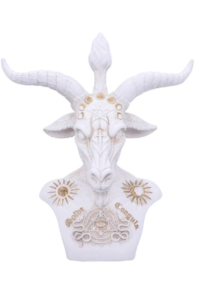 A symbol of the occult, is a winged, goat-headed hermaphrodite with a torch between its horns and a pentagram on its forehead. The chest bears the Latin words SOLVE (separate) and COAGULA (join together) and two snakes representing male and female. Worshiped by occultists from Jaques de Molay’s Templars to Alistair Crowly, Baphomet has long been a symbol of free-thinking, heresy and forbidden knowledge. The mystical figurine is cast in the highest quality resin before being expertly hand-painted.