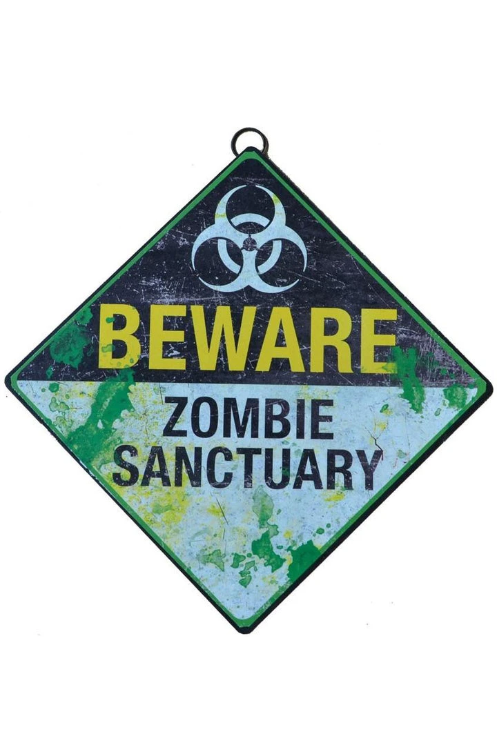 Gothic Metal Wall Sign, Beware Zombie Sanctuary Sign 30cm.