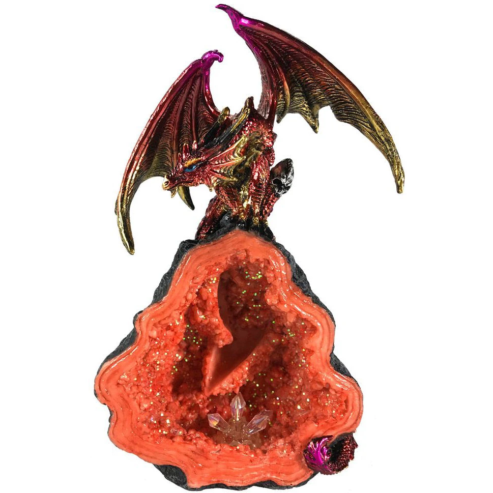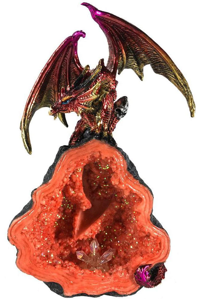 - This Red Dragon is poised to attack anyone who steps too close to his geode.