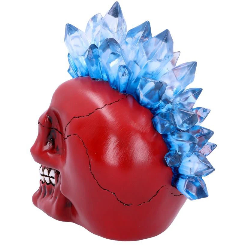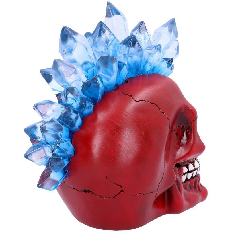 Not just any normal skull, our Crystal Hawk is covered in a red hue and has large blue crystals standing to attention on the top of the cranium which light up, thanks to a small switch on the base of the skull. The lights change between red, orange, green, blue and many more. Cast in high-quality resin before being painstakingly hand-painted, this skull is perfect for those who want to look on the light side of death.