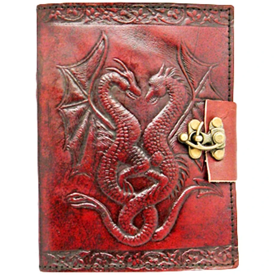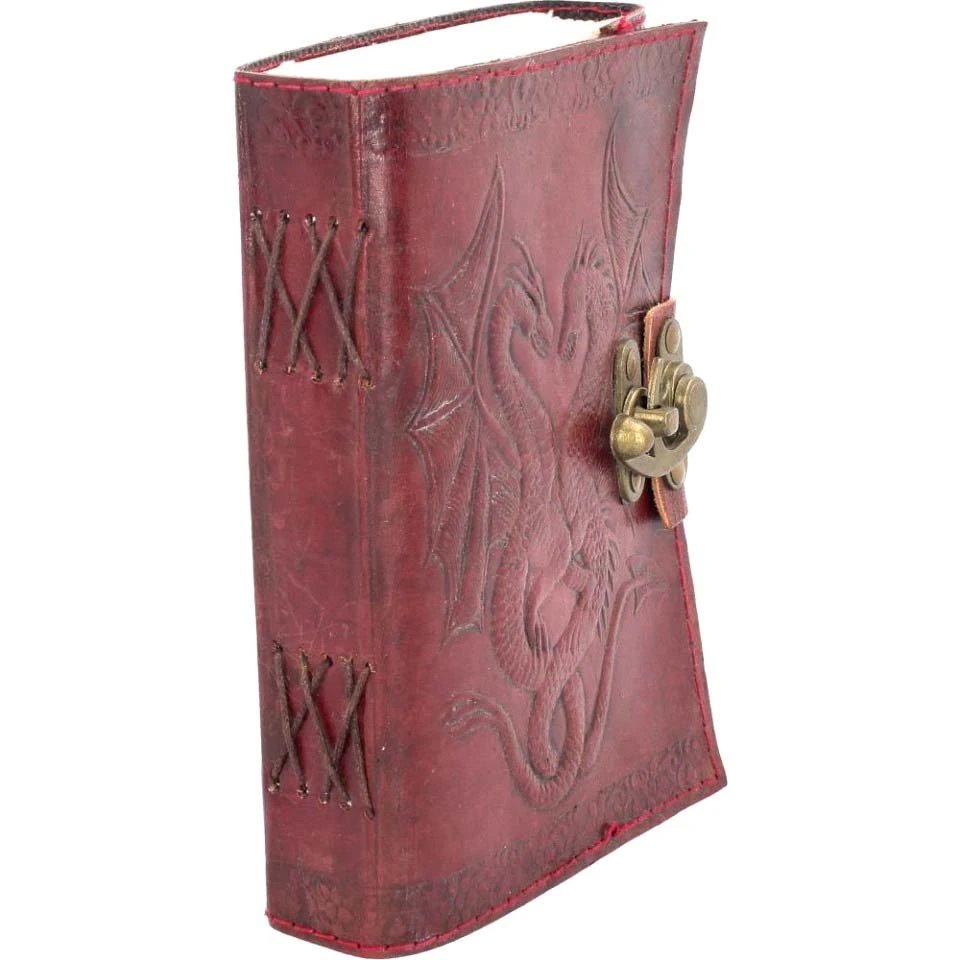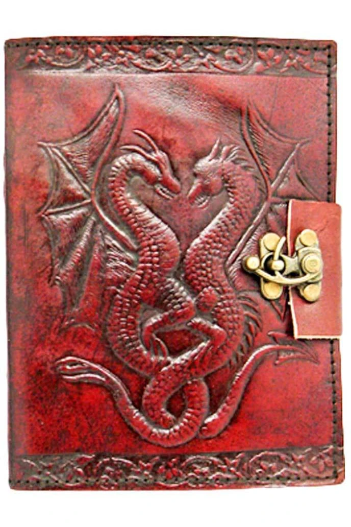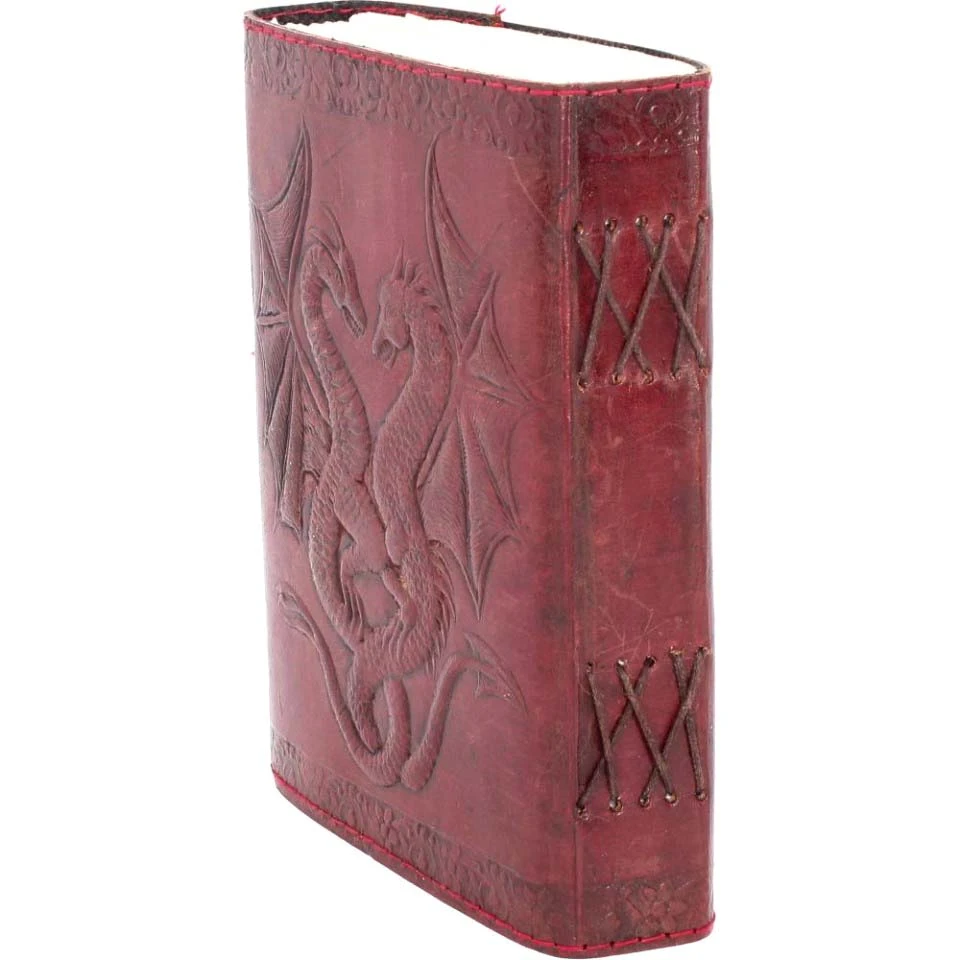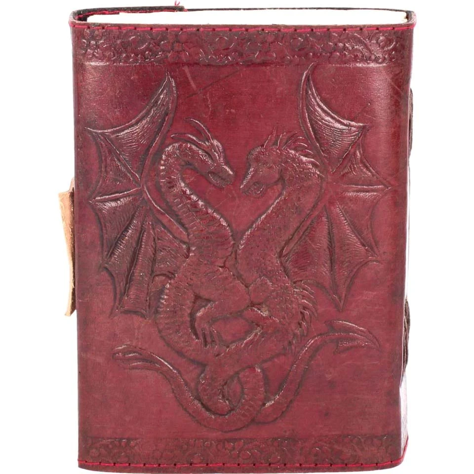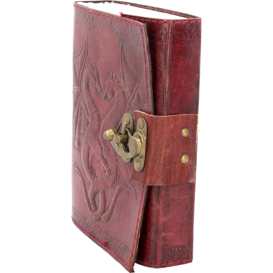 Channel your love of witchcraft with this mystical Leather Journal. Bound in brown leather, the book comes with one metal clasp, keeping it from falling open unexpectedly. The cover is embossed with the image of two entwined Dragons in the centre and bordered with an intricate floral pattern. Inside, high-quality plain paper gives you the freedom to record your thoughts and dreams unimpeded.