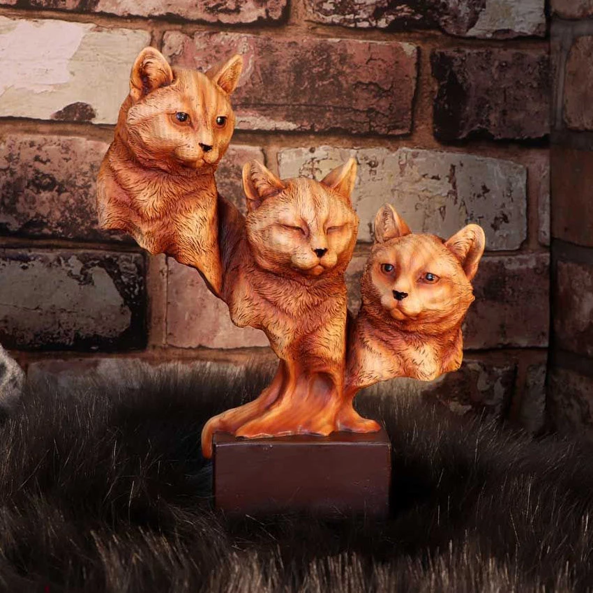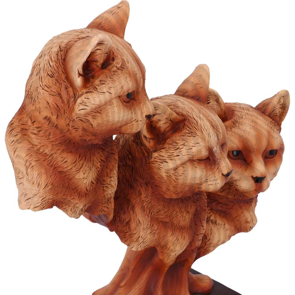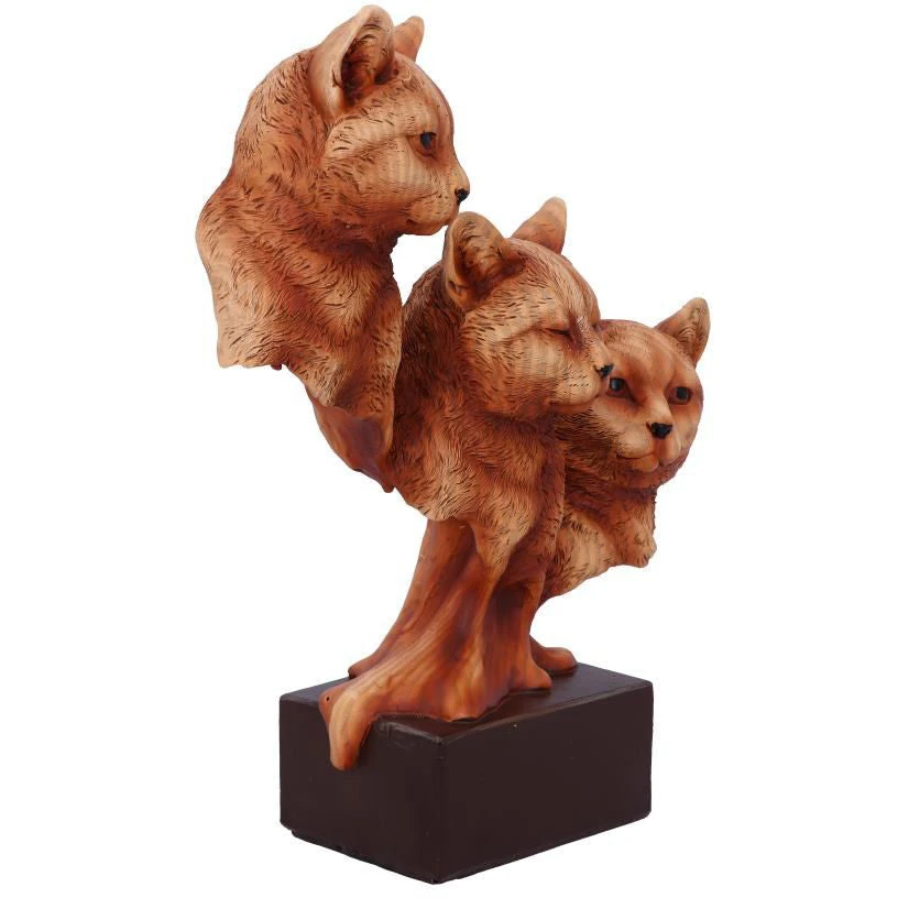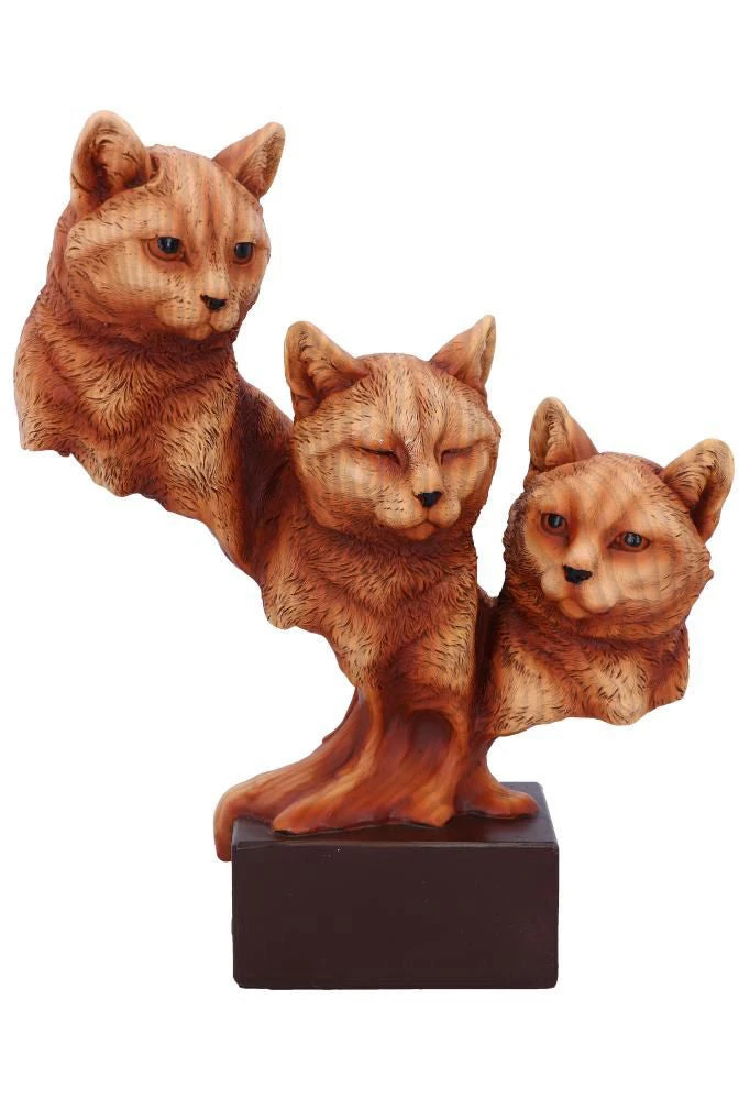 “Carved out of wood effect” these three luxuriant cats are beautifully crafted. Their relaxed faces light up as they stare off into the distance while flanking a precious puss that rests its eyes at the centre. Resting on a dark-wood effect plinth, the piece is cast in the finest resin before being carefully hand-painted to produce a realistic wood-effect. This statue is the perfect decorative piece for any cat admirer.