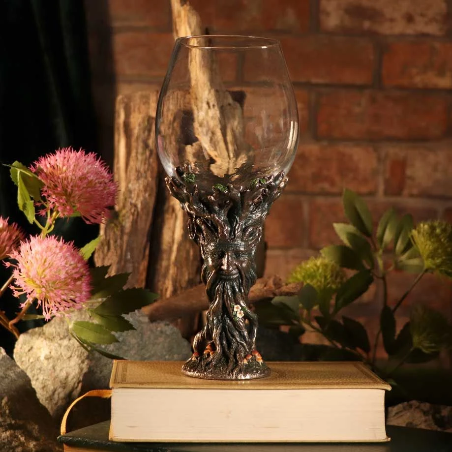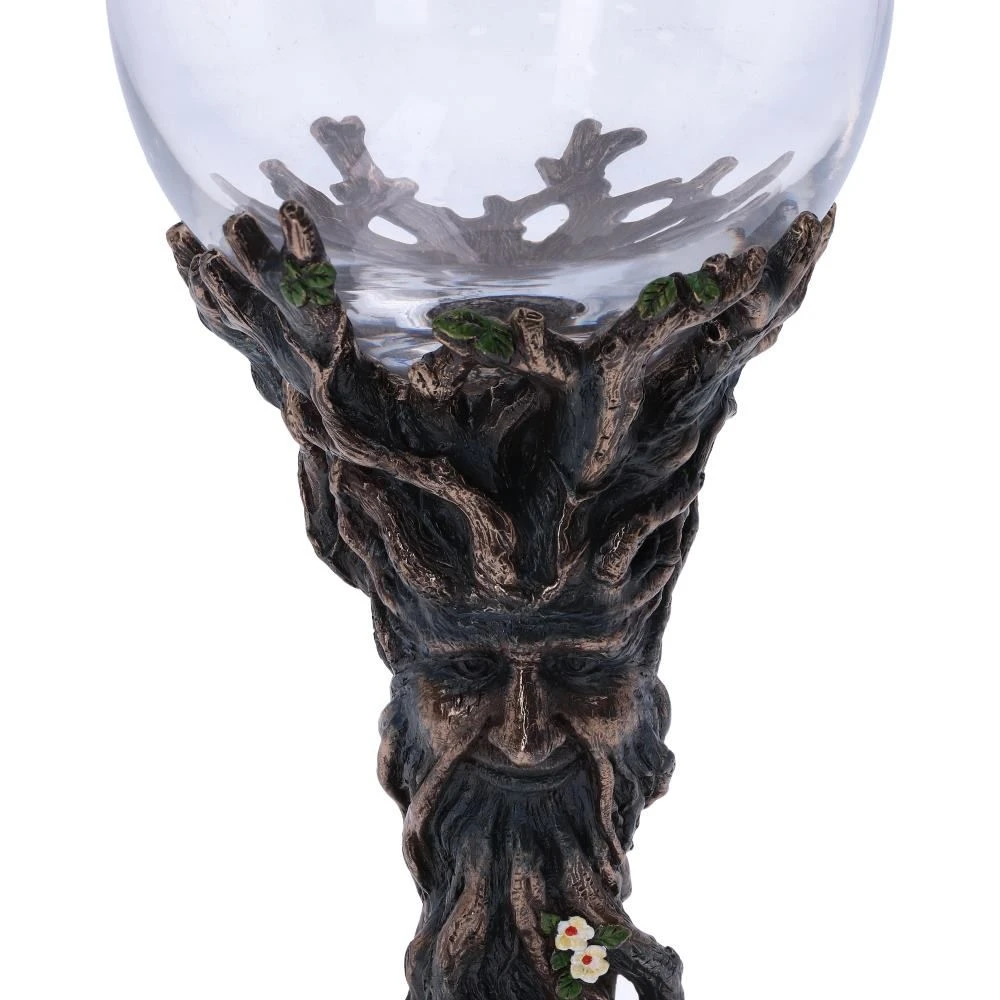 Bronze Forest Nectar Ancient Tree Spirit Green Man Goblet Wine Glass.