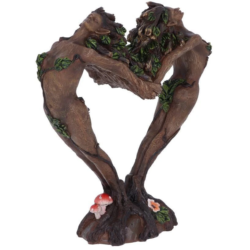 These guardians of the forest stand hand in hand creating a beautiful love heart shape with their bodies. A network of branches come together to form trunks at the base of the figurine as the guardians become one with the forest, whilst a thick canopy of leaves cascade from their hair as they look up to the sky. Cast in the finest resin before being expertly hand-painted, this piece is perfect for those who are at one with nature.