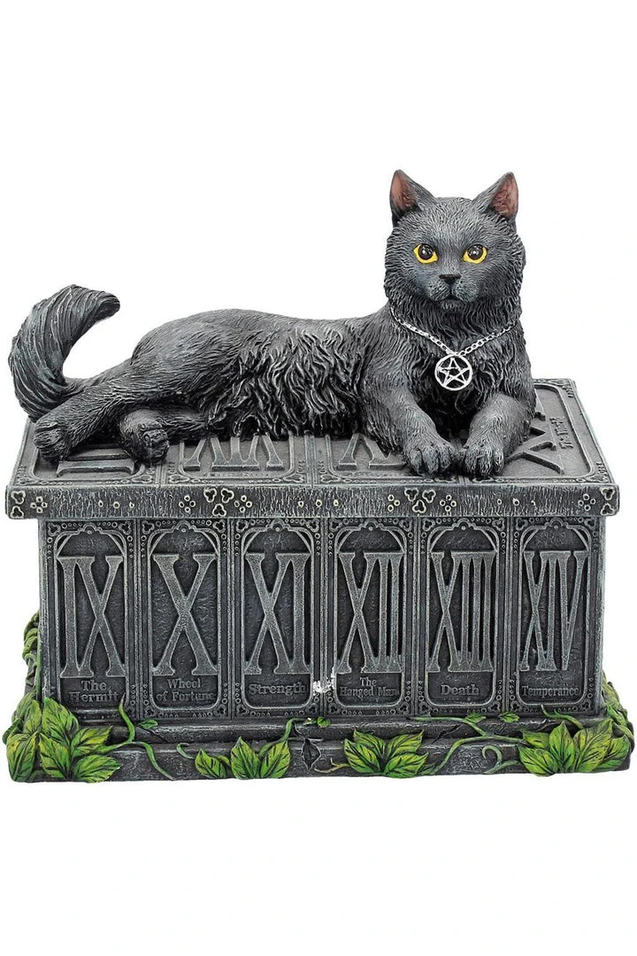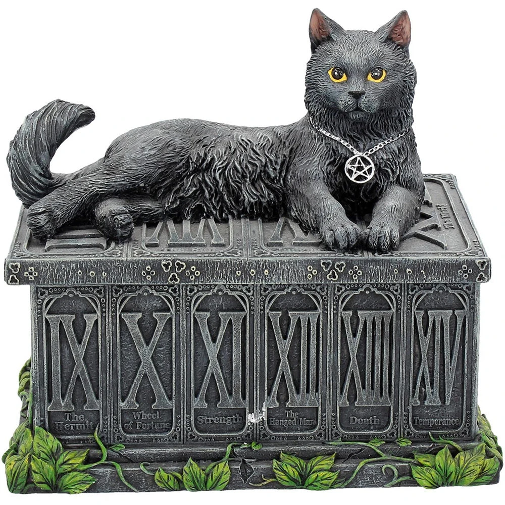 - Beautifully crafted Tarot Card Holder topped with a black cat.