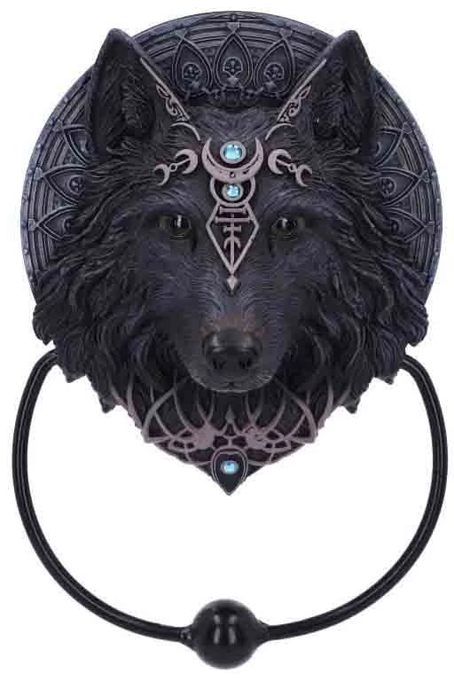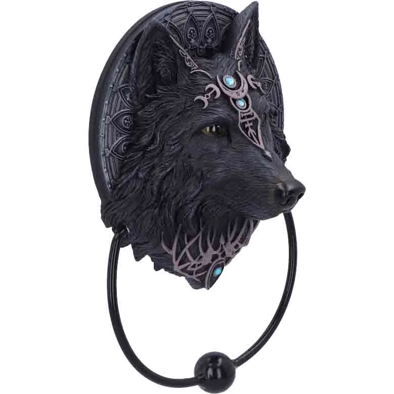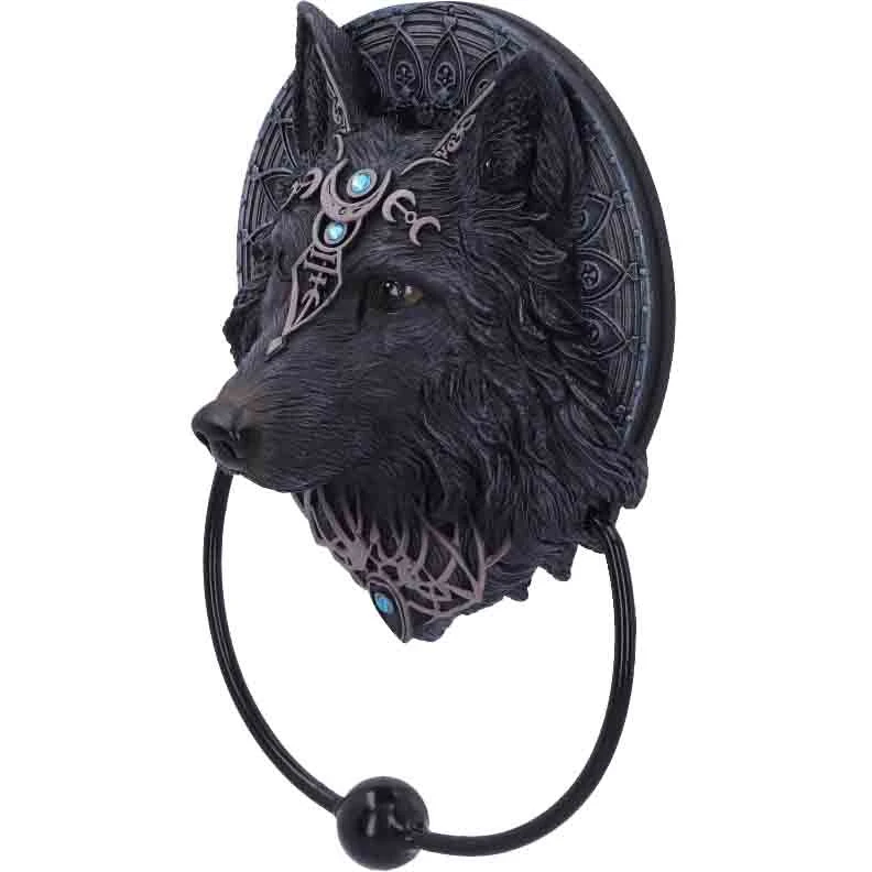 - Beautifully crafted black Wolf Moon Door Knocker.