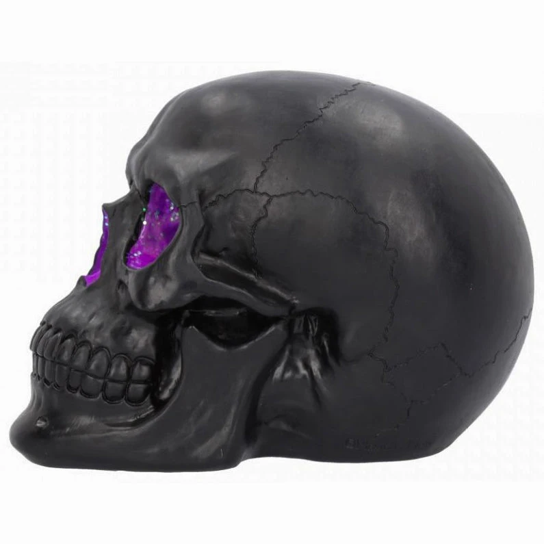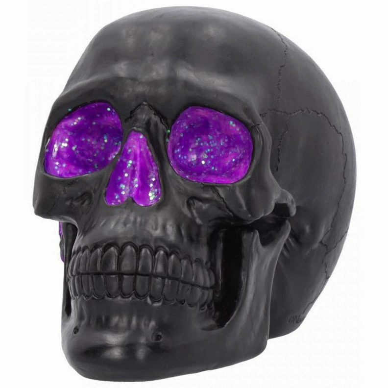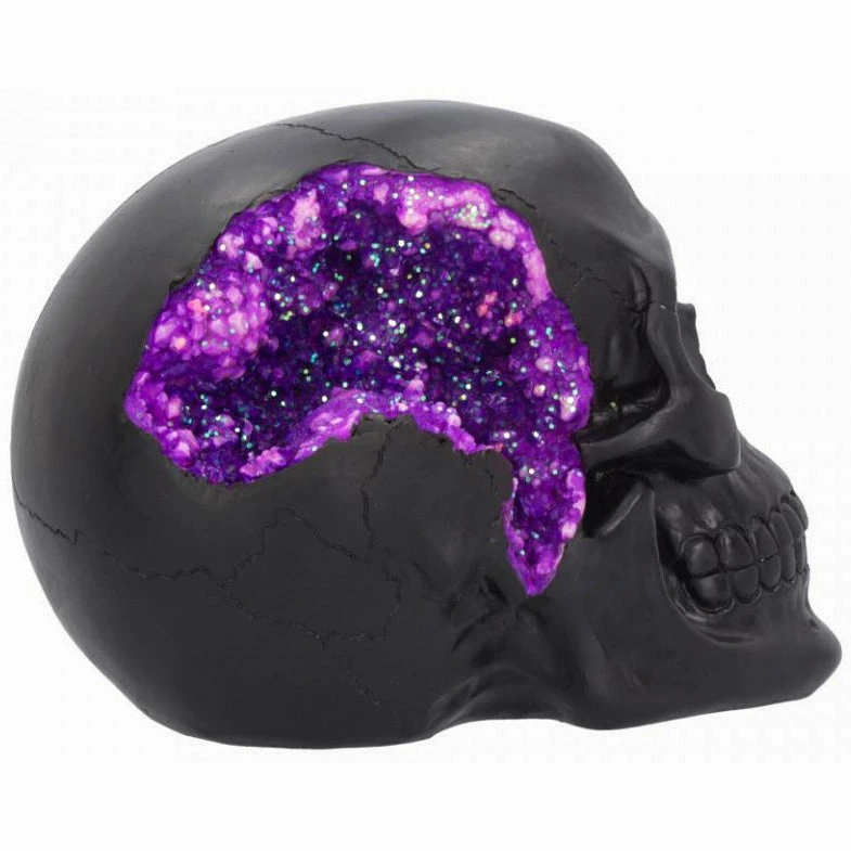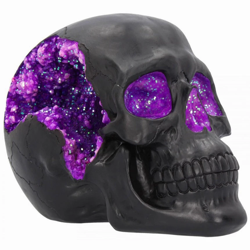 - Plain matte black skull complete with a sparkling purple geode accent