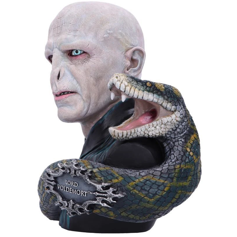 Be inspired by the world of Witchcraft and Wizardry with this officially licensed Harry Potter Lord Voldemort Bust. As the heir of Salazar Slytherin, Lord Voldemort, formally known as Tom Marvolo Riddle, is considered to be the most powerful dark wizard of all time. He who must not be named possesses extreme power and intelligence that are feared by most. His piercing blue eyes stare hauntingly into your soul whilst Nagini the snake sits guarding the shoulder of Lord Voldemort, fangs like daggers ready to make her attack. Cast in high quality resin before being expertly hand-painted this Lord Voldemort bust is the perfect addition to any Harry Potter fans collection.