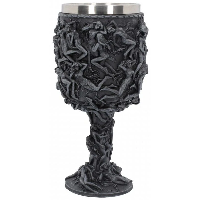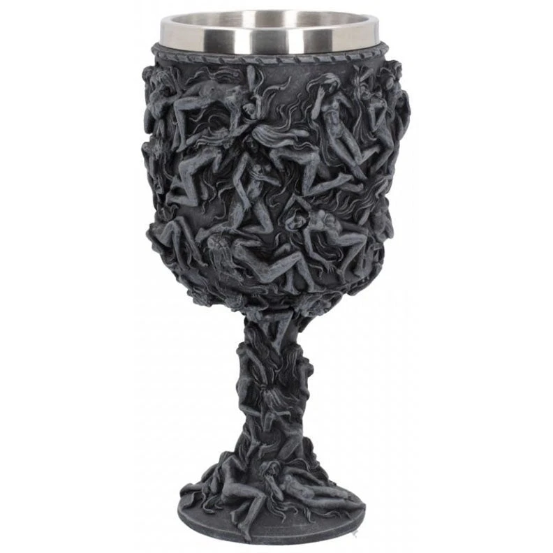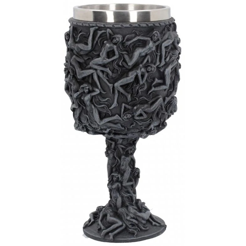 Dark grey, the bulk of this vessel is covered in writhing nubile female forms, engaged in multiple acts. Trapped by their own lasciviousness, they are the same dull grey as the Goblet itself. Cast in high-quality resin before being expertly hand-painted, this illustration of the sin of lust is a great gift for those who only have one thing on their mind.
