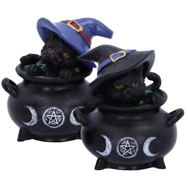 - Witches Familiar Black Cat and Cauldron Figurines.