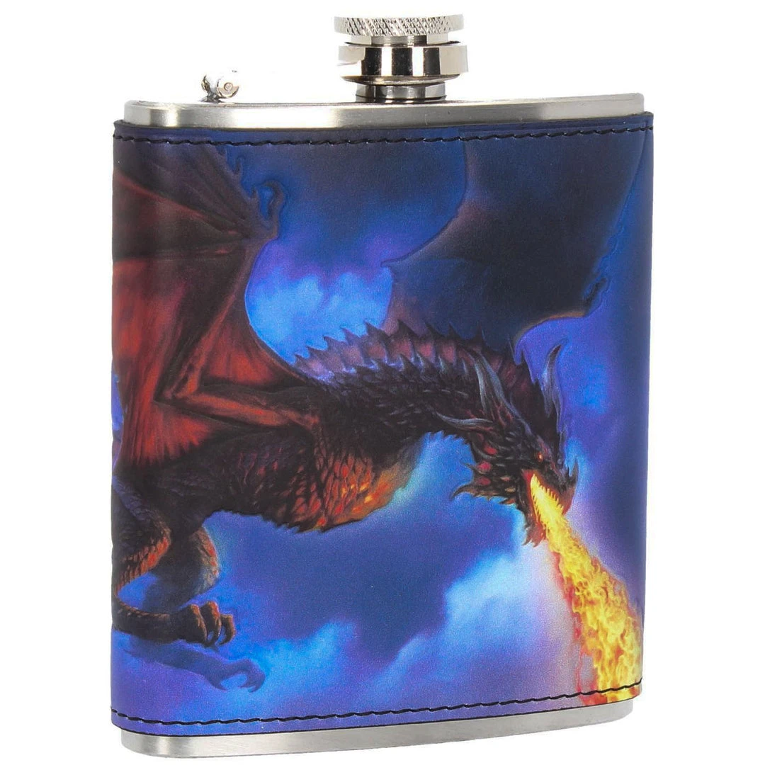 Keep out the cold with this fantastic alternative Hip Flask, exclusively designed for Nemesis Now by James Ryman. Soaring through the night sky, surrounded by clouds, this majestic red Dragon flaps their wings in full flight. Leaning their head down while their wings are stretched above them, they eject a fierce jet of flame from their mouth, aimed at their hapless targets below. Perfect for keeping a discreet nip on you for when you really need it.