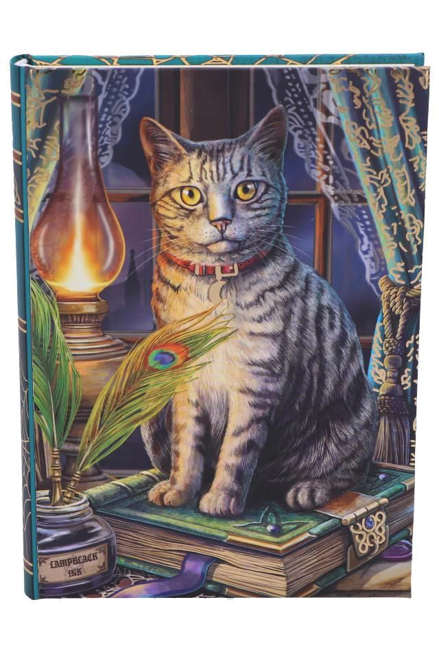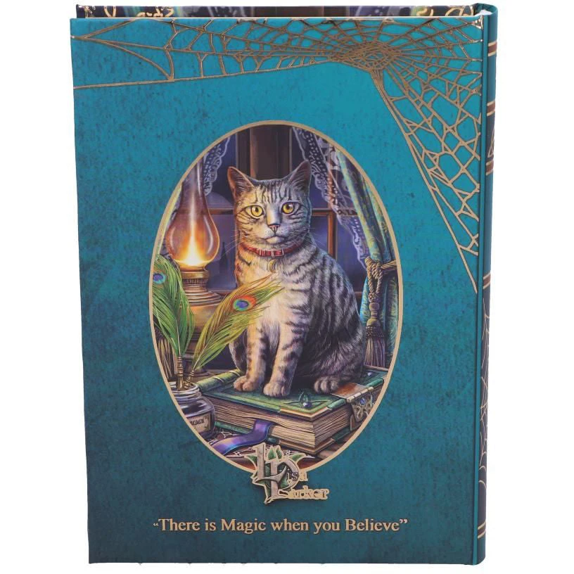 From the untamed imagination of Lisa Parker. An inquisitive kitty perches on top of a witch’s leather book of shadows, protecting the spells and magic written within. Whilst on the back of the journal the quote ” There is magic when you believe” can be seen, written in gold, adding to the second to none detailing of the piece. Made of high-quality paper, this portable journal is perfect for writing down your magical adventures.