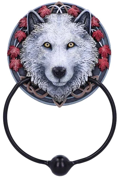 Lisa Parker Guardian of the Fall White Autumn Wolf Door Knocker.
