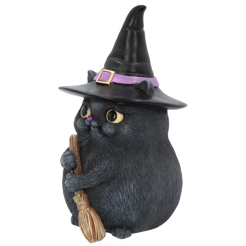 This charming figurine is part of the Snapcats collection. Sitting upright, eyes bright with excitement, this rotund black cat clutches a wooden broom in their front paws. On their head, their ears poke through the brim of a large black witches’ hat. Cast in the finest resin before being lovingly hand-painted, this cute kitty is the perfect embodiment of their favourite filter!.