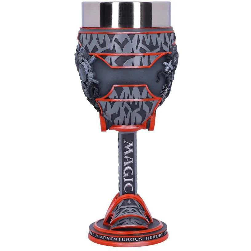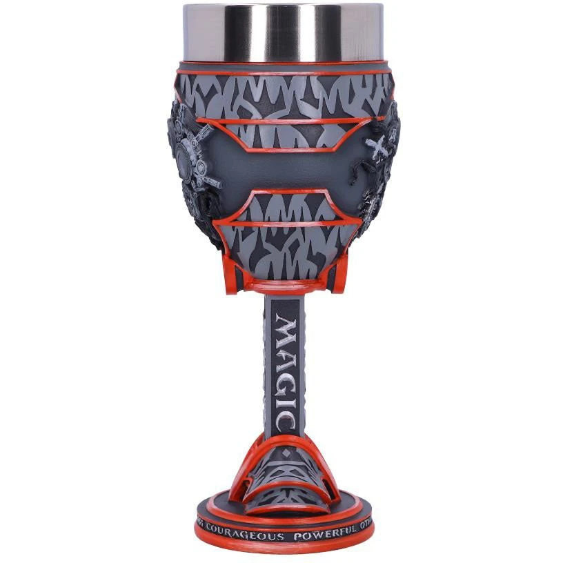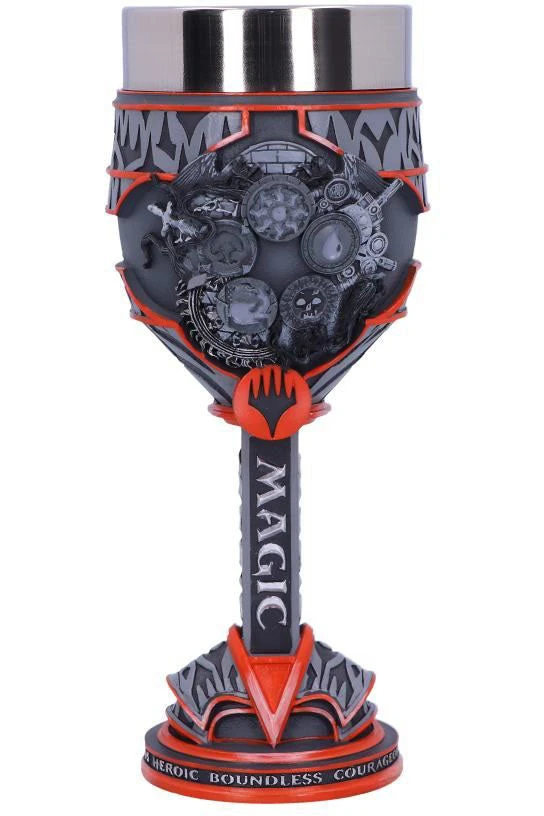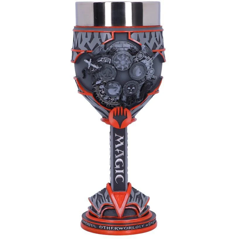Commemorate the first modern trading card game with Nemesis Now’s Magic: The Gathering Goblet. Emblazoned at the top of the stem is the bright orange Planeswalker spark. The focal point of the Goblet is the highly detailed “Colour Wheel” at its centre. There are five colour identities: white, blue, black, red and green, each representing both a way of thinking about the world and a collection of related magical powers. Towards the base of the Goblet the words; Adventurous, Heroic, Boundless, Courageous, Powerful and Otherworldly, terms that describe most Planeswalkers. Engraved on the stem is the Magic logo text. Cast in the finest resin, this MTG Tankard will make a fine addition to any Planeswalkers collection.