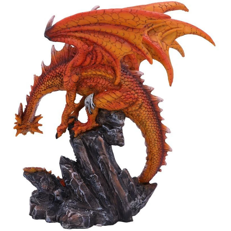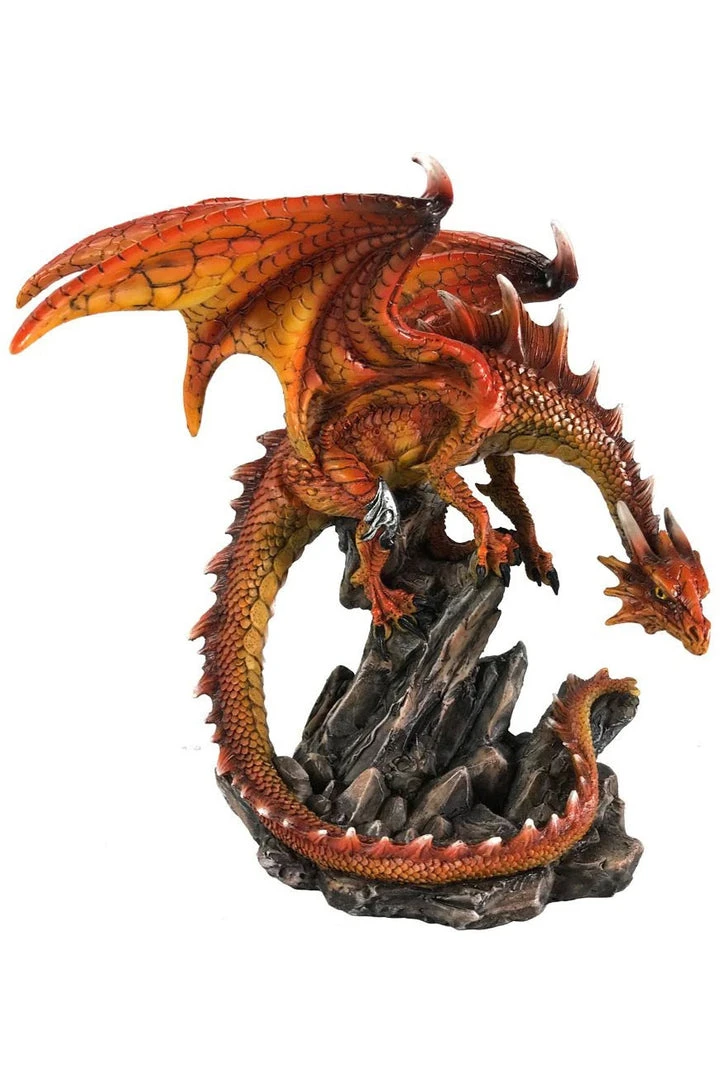 Standing on a perilous rock crag, this large orange dragon balances with its wings spread wide. With its head looking downward this fearsome dragon appears like its about to take flight. Cast in the finest resin before being expertly hand-painted, this piece will make the perfect addition to any dragon fanatics collection.