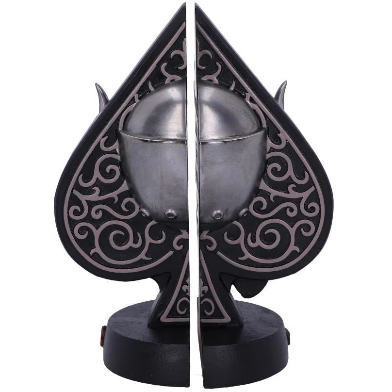 Representing potency, filth, loudness and freedom, the iconic Warpig (also known as “snaggletooth”) has become a vital ingredient to the band’s legacy, perfectly representing the Motörhead attitude and lifestyle. Its deep-red eyes stare ahead unblinkingly while it’s snarling mouth salivates, intimidating all who meet its gaze. Behind the Snaggletooth there is a large black Ace of Spades, which can be split in half to form the most rocking bookends. Cast in the finest resin before being carefully hand-painted, this icon of rock is the perfect way to pay homage to one of the loudest Rock and Roll bands of all time.