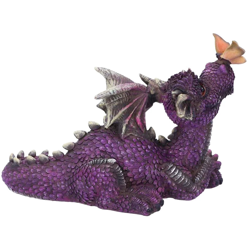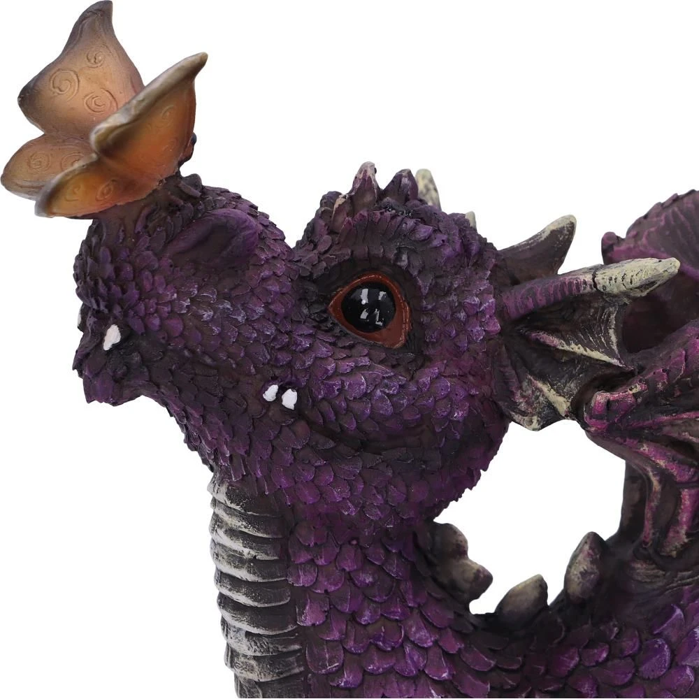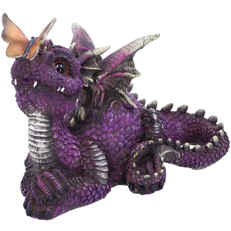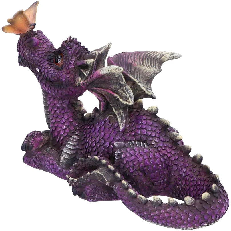 Laying down on the ground, this adorable purple dragon looks up lovingly at an orange butterfly tickling its nose. Cast in the finest resin before being expertly hand-painted, this fantastical figurine would make the perfect addition to any dragon enthusiast’s collection.