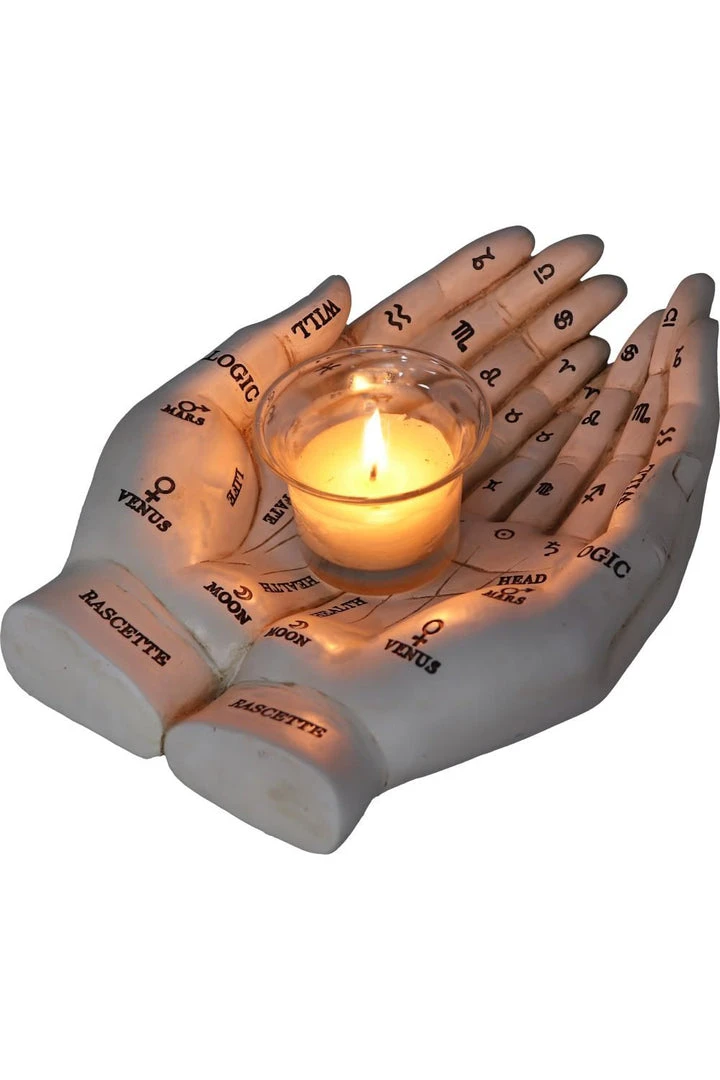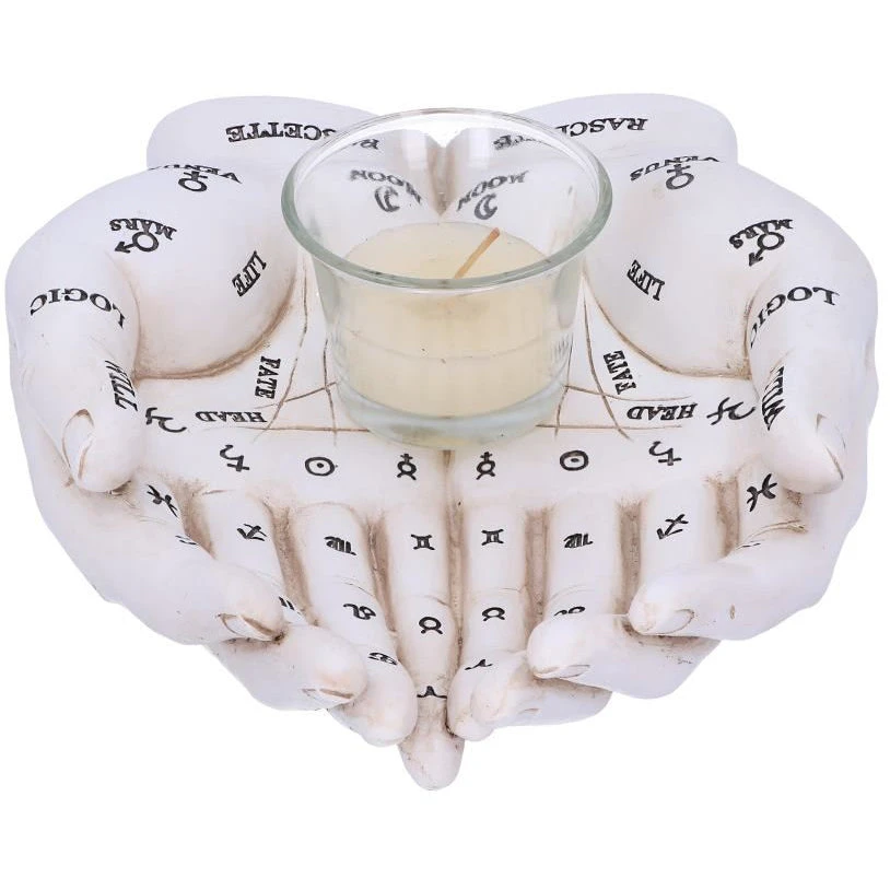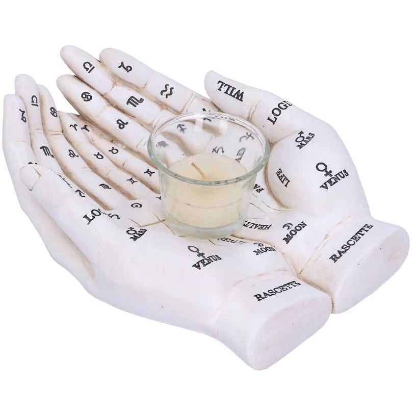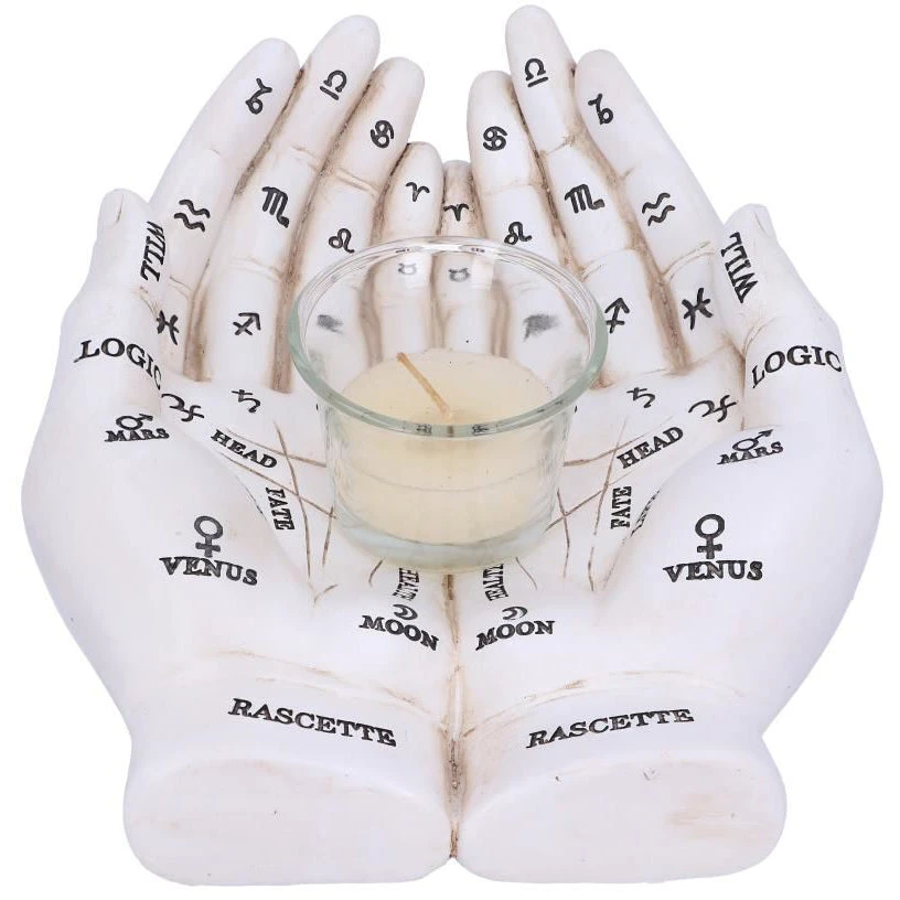 Palmist’s Guide White Chiromancy Hands Candle Holder.