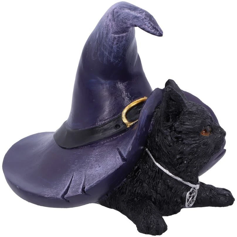 Peeking out from under a crooked purple witch’s hat staring sweetly into the distance. Cast in high-quality resin before being hand-painted, this Piper figurine would make the perfect addition to any witchcraft collection.