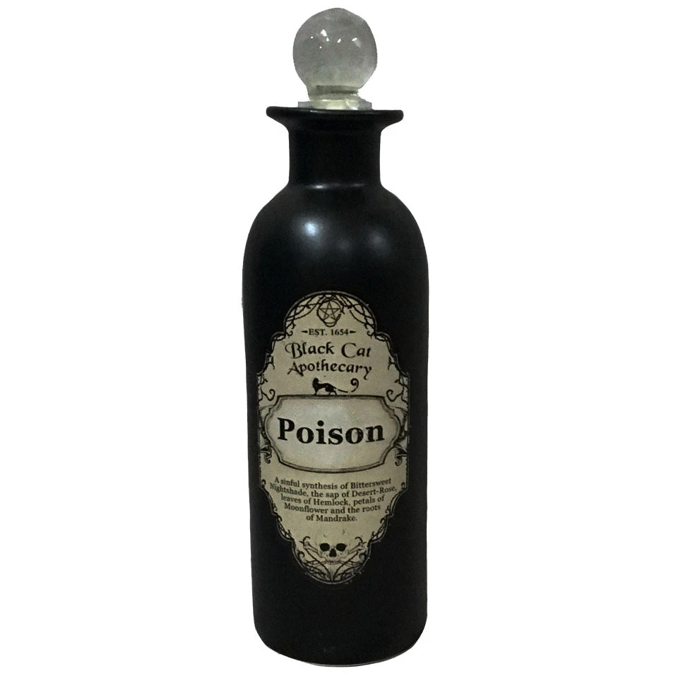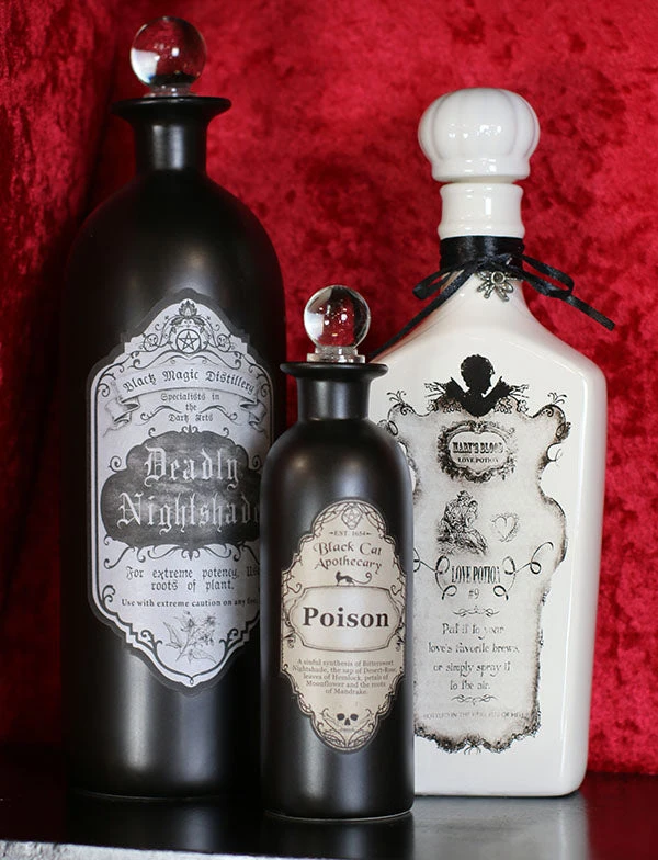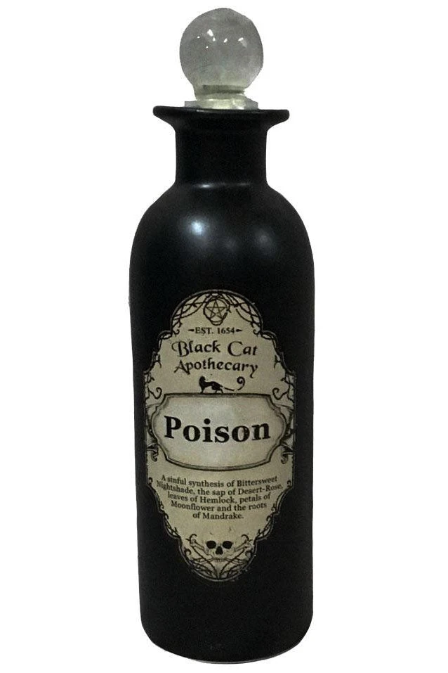 This unusual bottle looks as though it has just been taken from an apothecary. Predominantly black, this bottle features an aged ‘label’ that reads “The Black Cat Apothecary, Poison, A sinful synthesis of Bittersweet Nightshade, the sap of Desert-Rose leaves of Hemlock, petals of Moonflower and the roots of Mandrake.” Above the writing there is an emblem of a pentagram and below a skull and cross bones. This is the perfect gift for those who embrace their dark side.