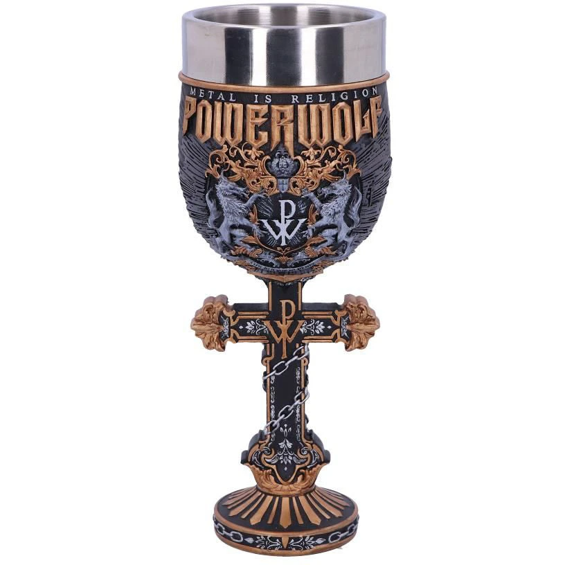 Join the Army of the Night and bang your heads to Heavy Metal masters Powerwolf, with this officially licensed Goblet! Detailed in Gold and emblazoned with their ‘Metal Is Religion’ coat of arms, this Goblet has been cast in the finest resin before being expertly hand-painted and features a stainless steel insert for ease of cleaning.