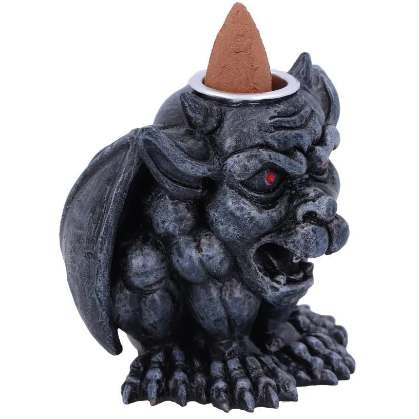 This Gargoyle sits crouched, devilish eyes staring into your soul and mouth open wide in a threatening manner. On top of the head is a small tray, perfect for burning our back flow incense cones. Cast in the finest resin before being expertly hand-painted, this figurine would make a great addition to any gothic or horror collection.