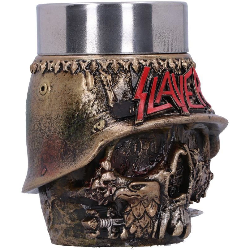 Pay homage to the thrash metal gods with this officially licensed Slayer Shot Glass. Designed to incorporate their Helmet Skull band artwork, this piece instantly brings to mind Slayer’s fast tremolo picking, double bass drumming and shouted vocals. Cast in high-quality resin and hand-painted, this Shot Glass features a removable stainless steel insert so you can spend less time cleaning and more time moshing!