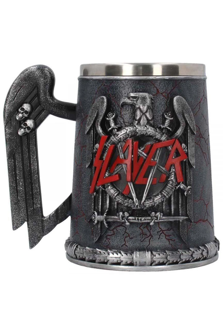 Pay homage to the thrash metal gods with this officially licensed Slayer Tankard! The band’s distinctive eagle and swords logo instantly brings to mind Slayer’s fast tremolo picking, double bass drumming and shouted vocals. Cast in high-quality resin and hand-painted, this Tankard features a removable stainless steel insert so you can spend less time cleaning and more time moshing!