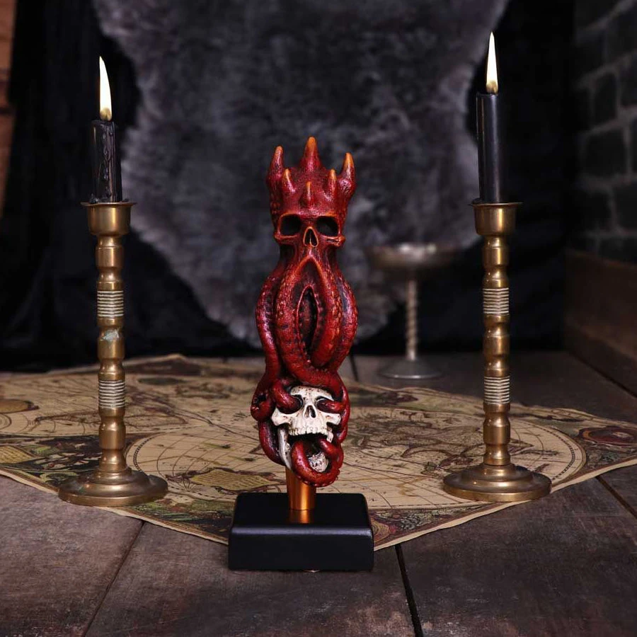As described as a great sea monster who terrorizes innocent nearby sailors, the Kraken is definitely one to fear. With red horns at the top of its head, the demonic creature can be seen wrapped around the skull of one of its victims. Cast in the finest resin before being expertly hand-painted.