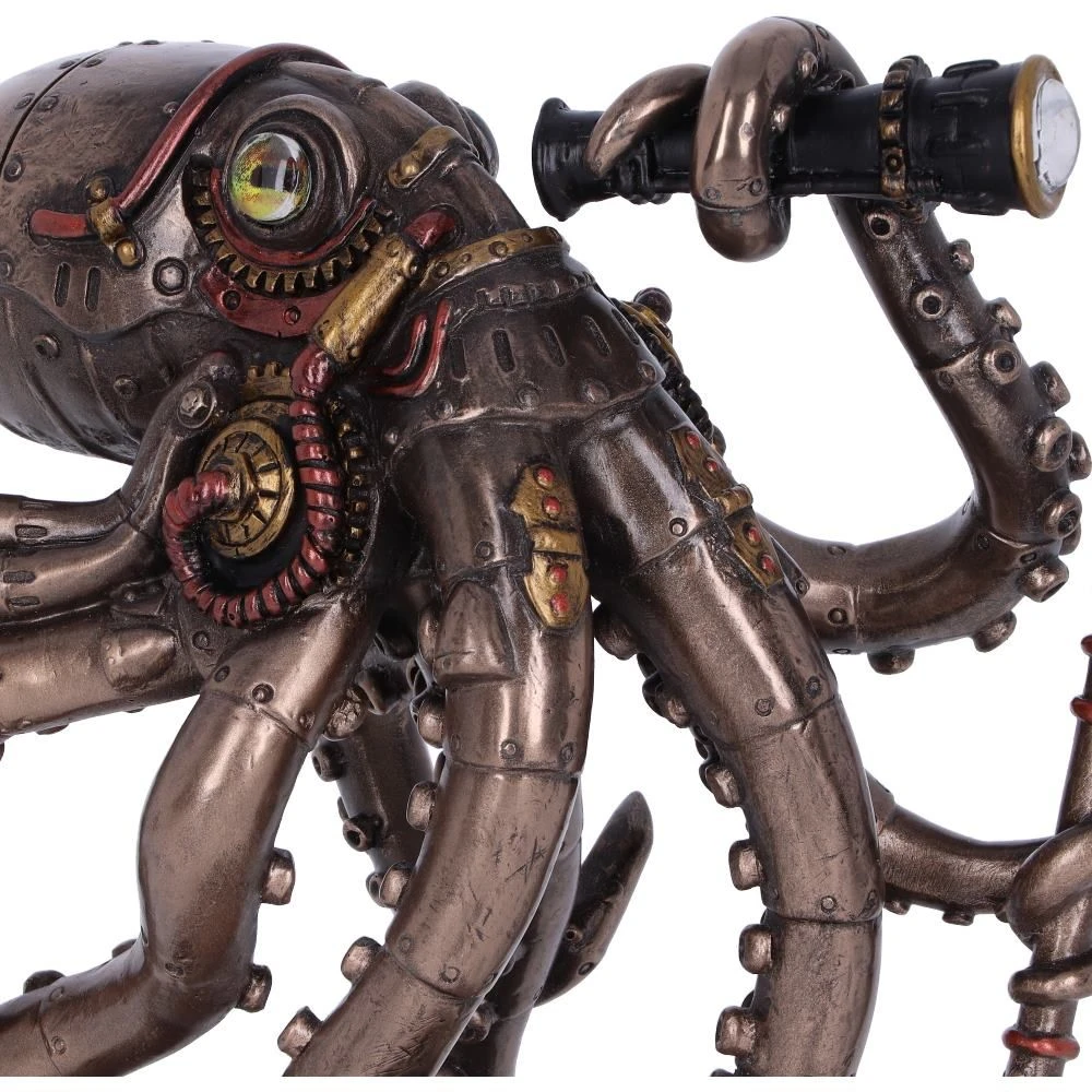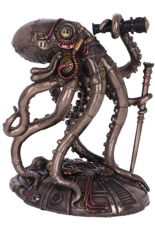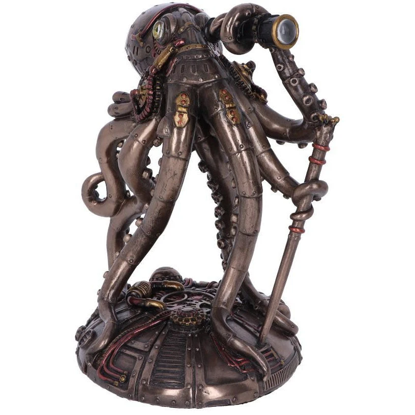 Cast in the finest resin before being given a bronze finish and hand-painted. This Octopus stands tall and ready to take on adventure, wearing a brass helmet, whilst looking through his monocular with his glassy eyes. Perfect for any steampunk enthusiast!