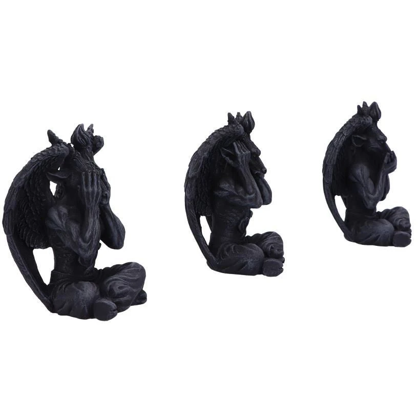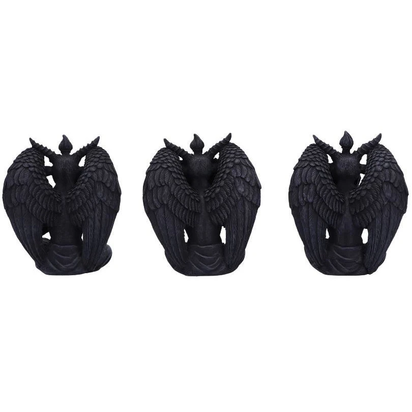 Sitting side by side, one covering their eyes, one their ears and one their mouth, these goat-headed hermaphrodites bare the Latin words SOLVE and COAGULA. Worshipped by occultists from Jacques de Molay’s Templars to Alistair Crowley, Baphomet has long been a symbol of free-thinking heresy and forbidden knowledge. Cast in high-quality resin before being expertly hand-painted these Three Wise Baphomet are perfect for any spiritual lover.