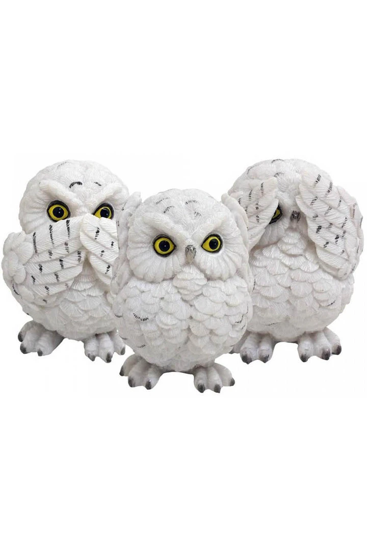 These adorable Owls are wise beyond their years. Sitting side by side, they perch on their small taloned feet. One covers their eyes with their wings, sneaking a quick peek through one eye, another covers their mouth in shock, and the third protects their ears. Illustrating the ancient wisdom “See no evil, hear no evil, speak no evil”, these owls are cast in high-quality resin before being expertly hand-painted.