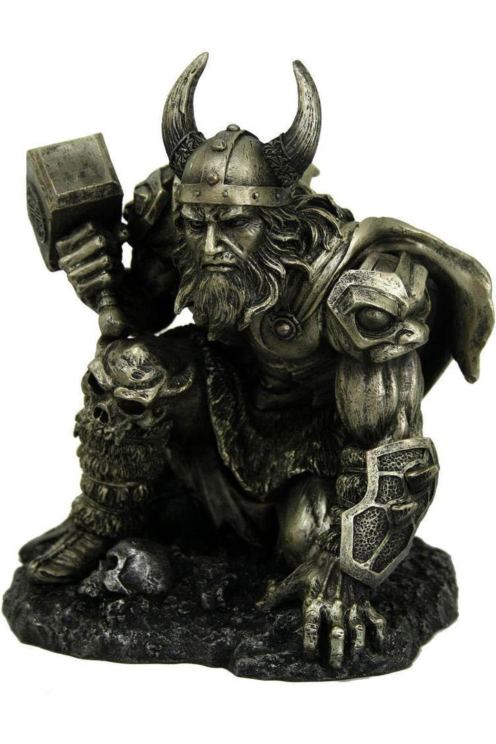 - Rising from the ground, Thor, son of Odin, clasps his legendary hammer Mjolnir.