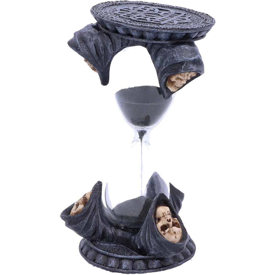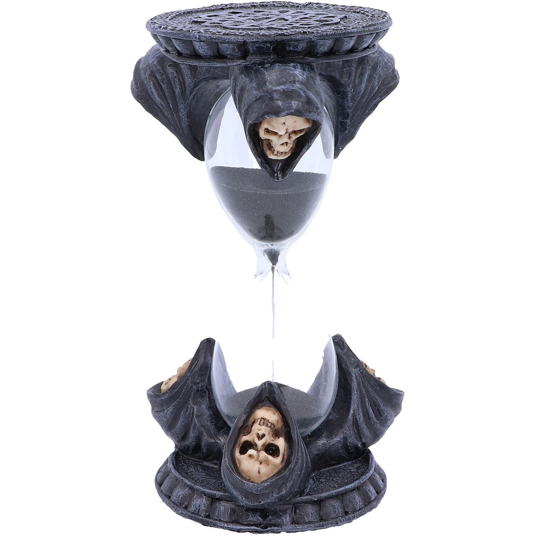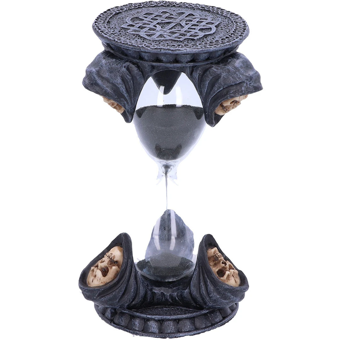Filled with black sand, this timer is a macabre lovers dream! Topped with the hooded faces of three skeletal Reapers peering over the side of the glass timer, the top is decorated with intricate Celtic patterns. When turned upside down, there are three more reapers which look over the timer, mirroring the ones above. Cast in the finest resin before being hand-painted, this product is perfect for any one whose time is running out.