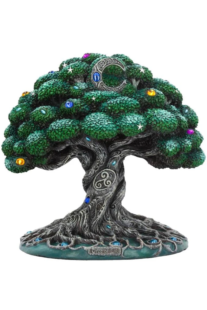 A symbol of longevity, wisdom and rebirth, our Tree of Life proudly stands under the light of the moon, filtering its spiritual energy. Its silvery roots form intricate networks throughout the earth, connecting the human race in love, peace and harmony. Cast in the finest resin before being carefully hand-painted, this beauty would make the perfect addition to any spiritual collection.