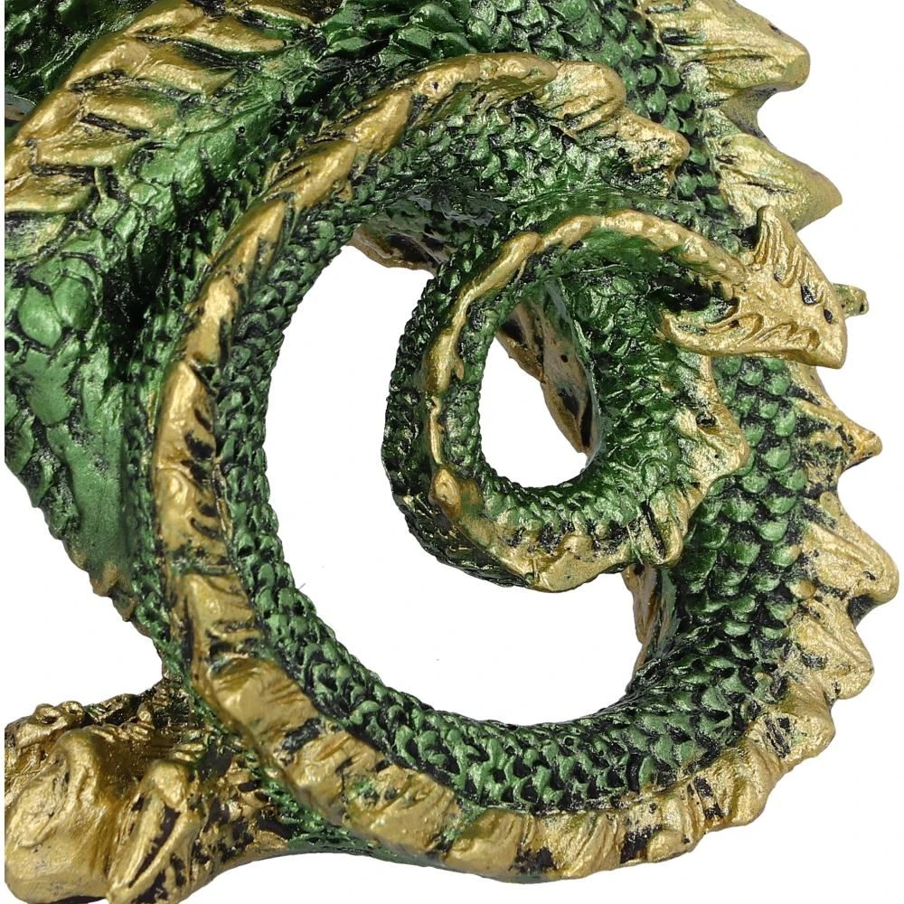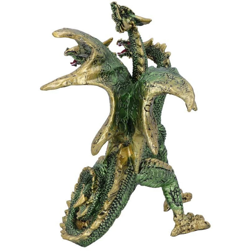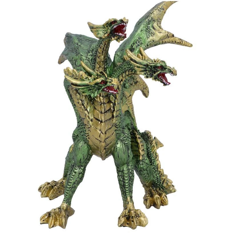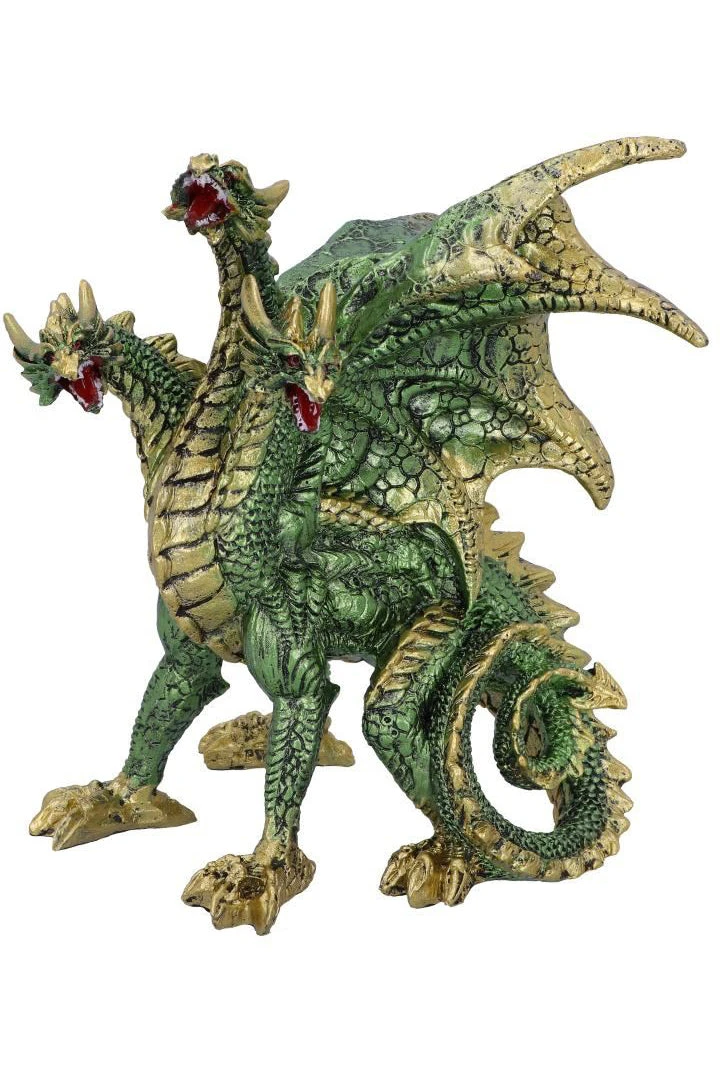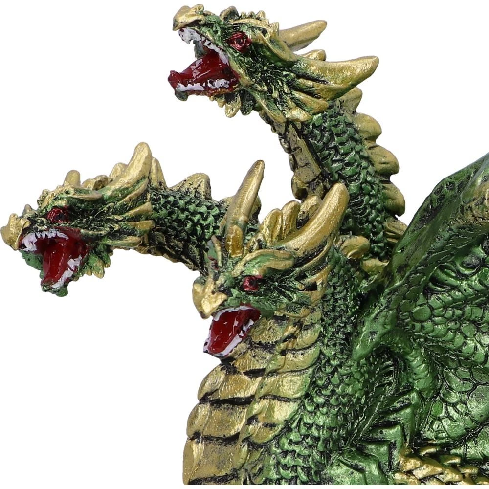 This three-headed, emerald-green Hydra stands fiercely. With golden accents on its under-belly, wingtips and clawed feet, this beast is protecting all it owns from any enemy. Cast in the finest resin before being hand-painted, this monstrous piece will look perfect in any dragon enthusiasts collection.
