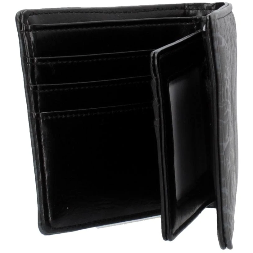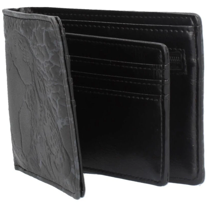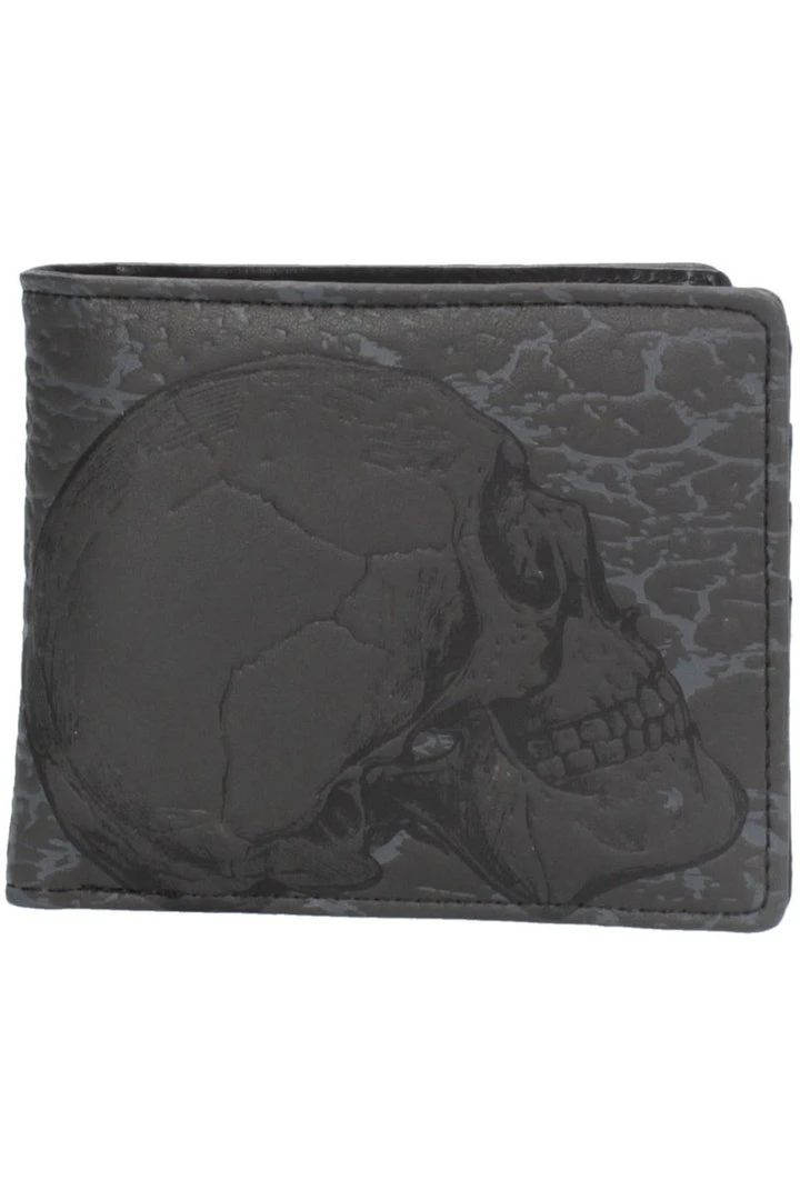 This mysterious Wallet has enough space for your cards, your cash, and the souls of the damned. On a black background, embossed grey cracks form. The outline of a black skull lies on top, staring off to the side. Perfect for any necromancer on the go, this Wallet is a great way to show your love of the macabre and mysterious while keeping your money safe.